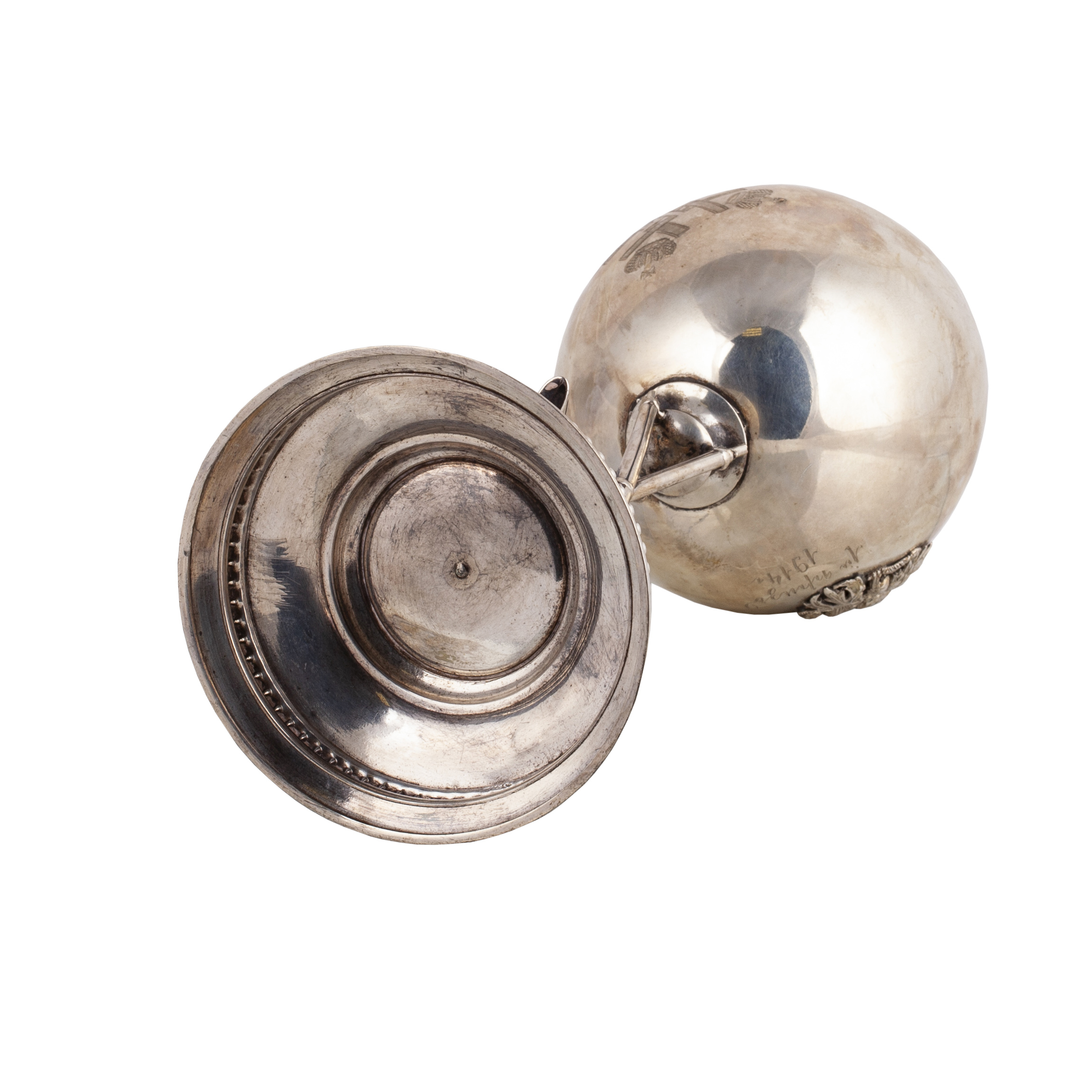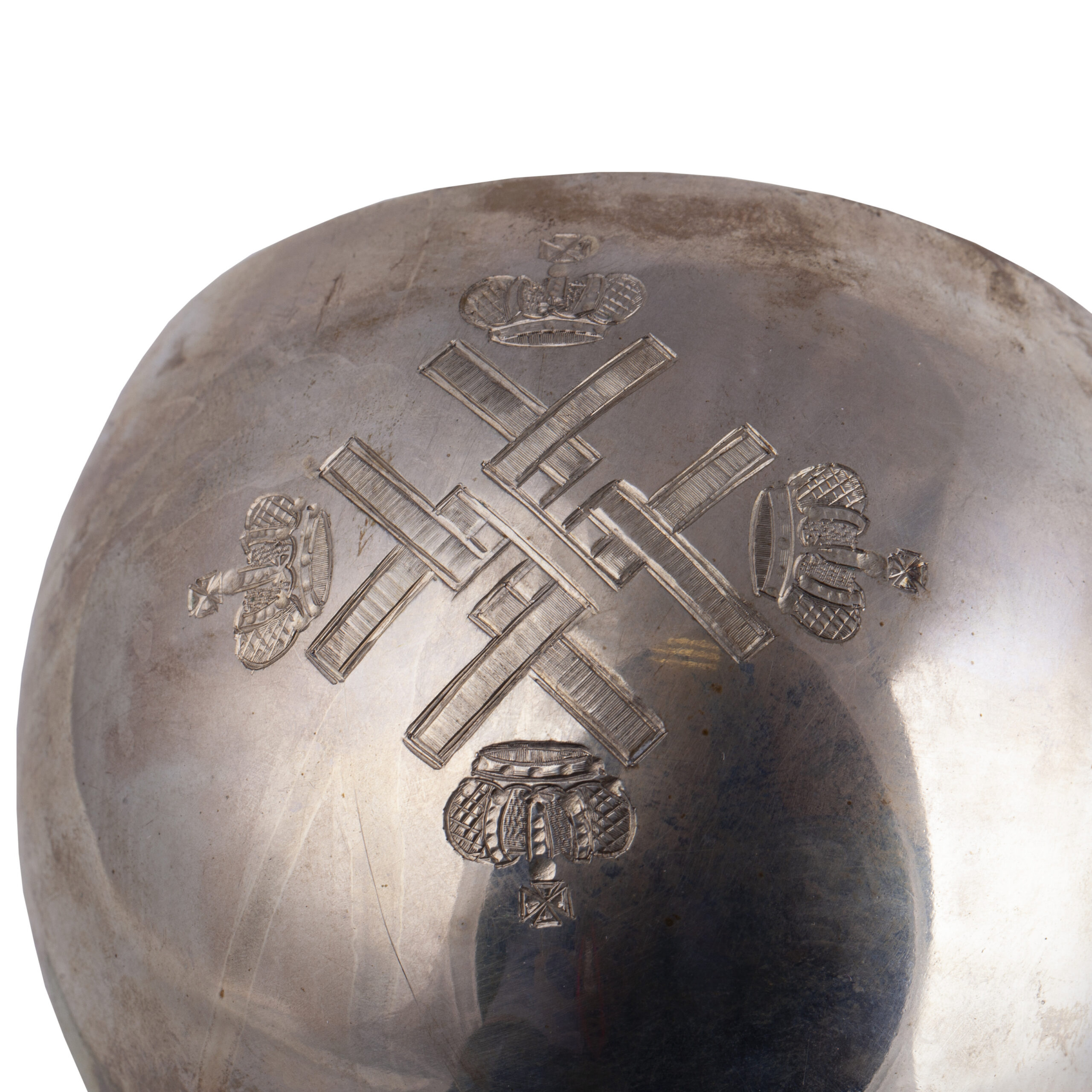 Of particular importance is the monogram of Grand Duke Nikolai Nikolaevich Romanov, Commander-in-Chief of the Russian Imperial Army, engraved on the cup. This monogram emphasizes the high status of the trophy and its direct connection to the Imperial House during the First World War.