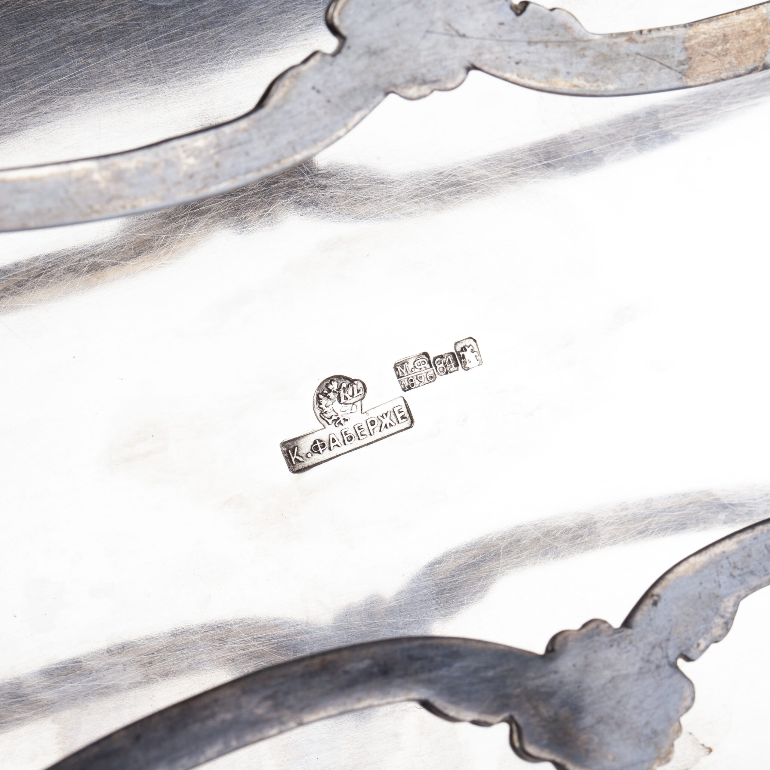 Maker’s mark: KF (Karl Fabergé), “K. Faberge” with Imperial warrant.