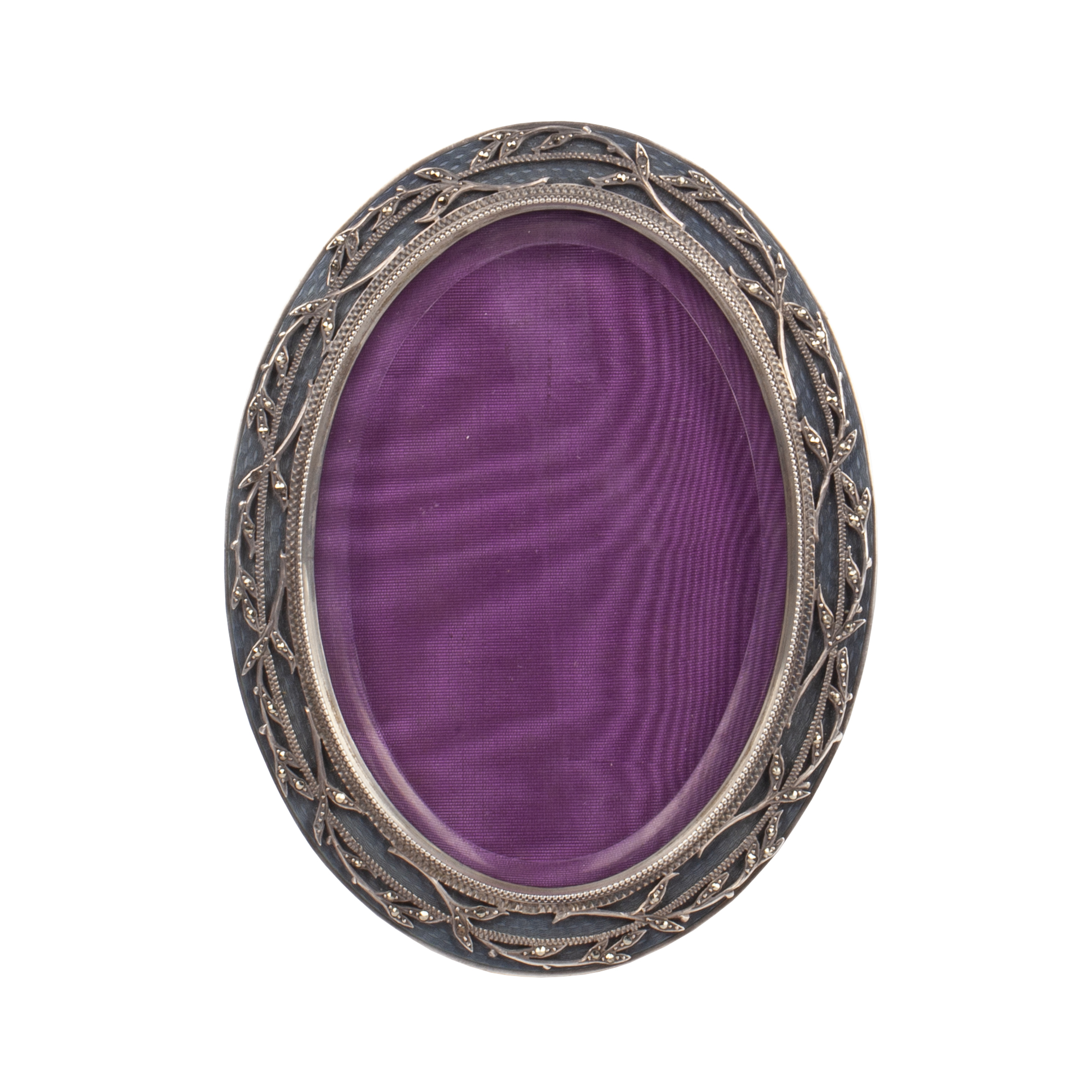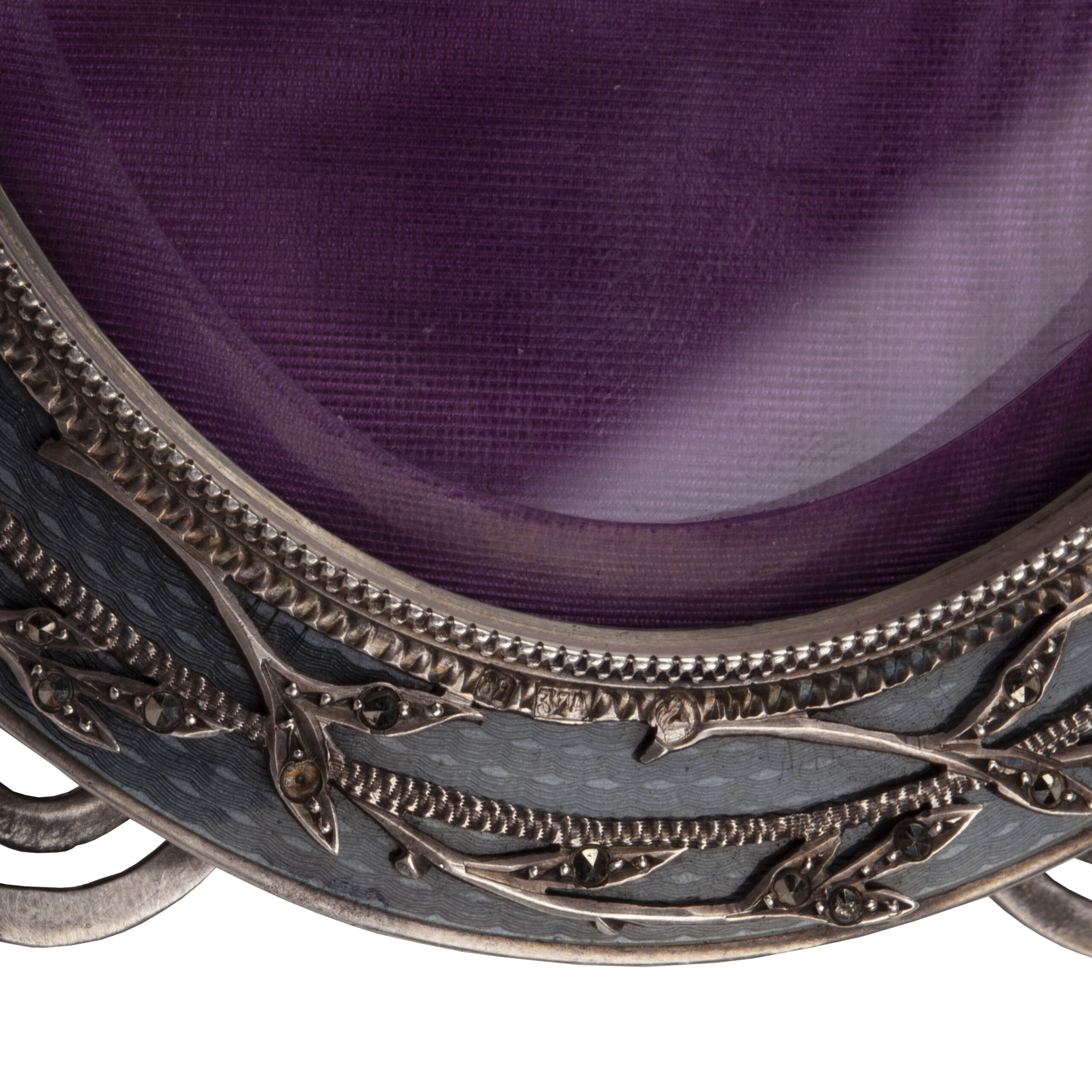 Silver, gliding, guilloche enamel.