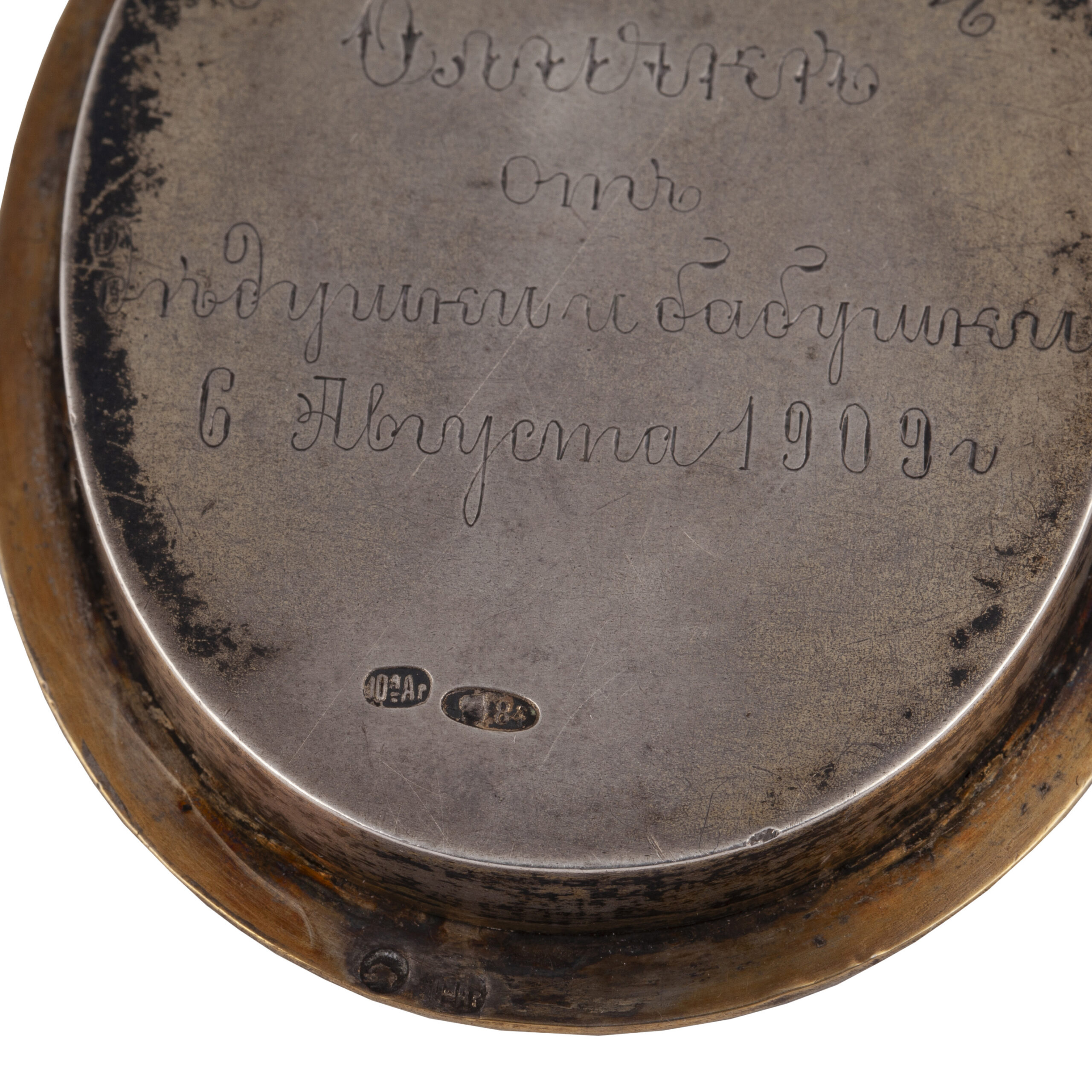 Vasiliy Egorovich Rukavishnikov was a master silversmith and niello craftsman active in Moscow in the 1890s and after 1908. His production was known for finely executed silverwork, and his pieces were periodically sold through the shop of Sh.M. Belenky, one of the most prominent jewelry and silver retailers of the time.Starting price: 3500€