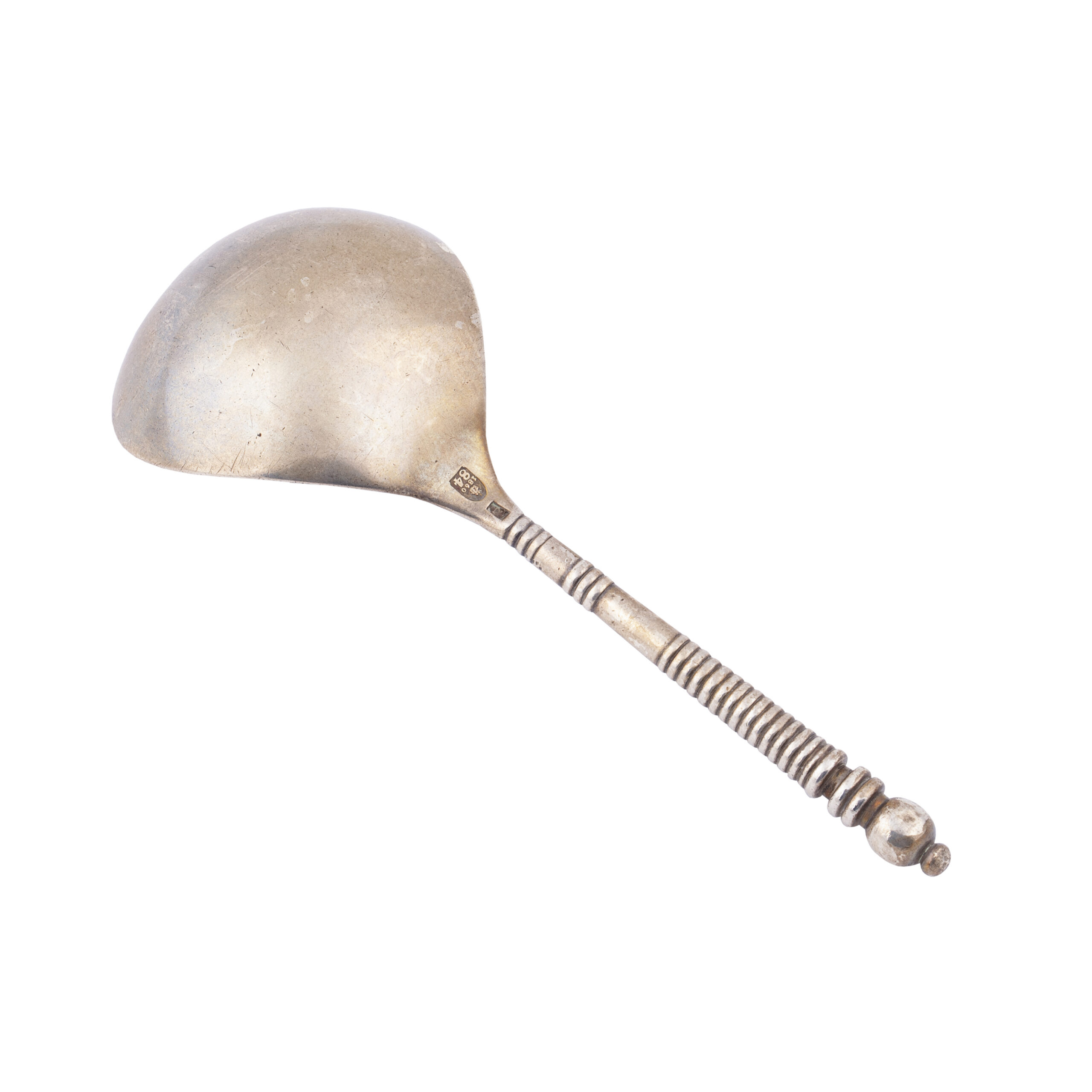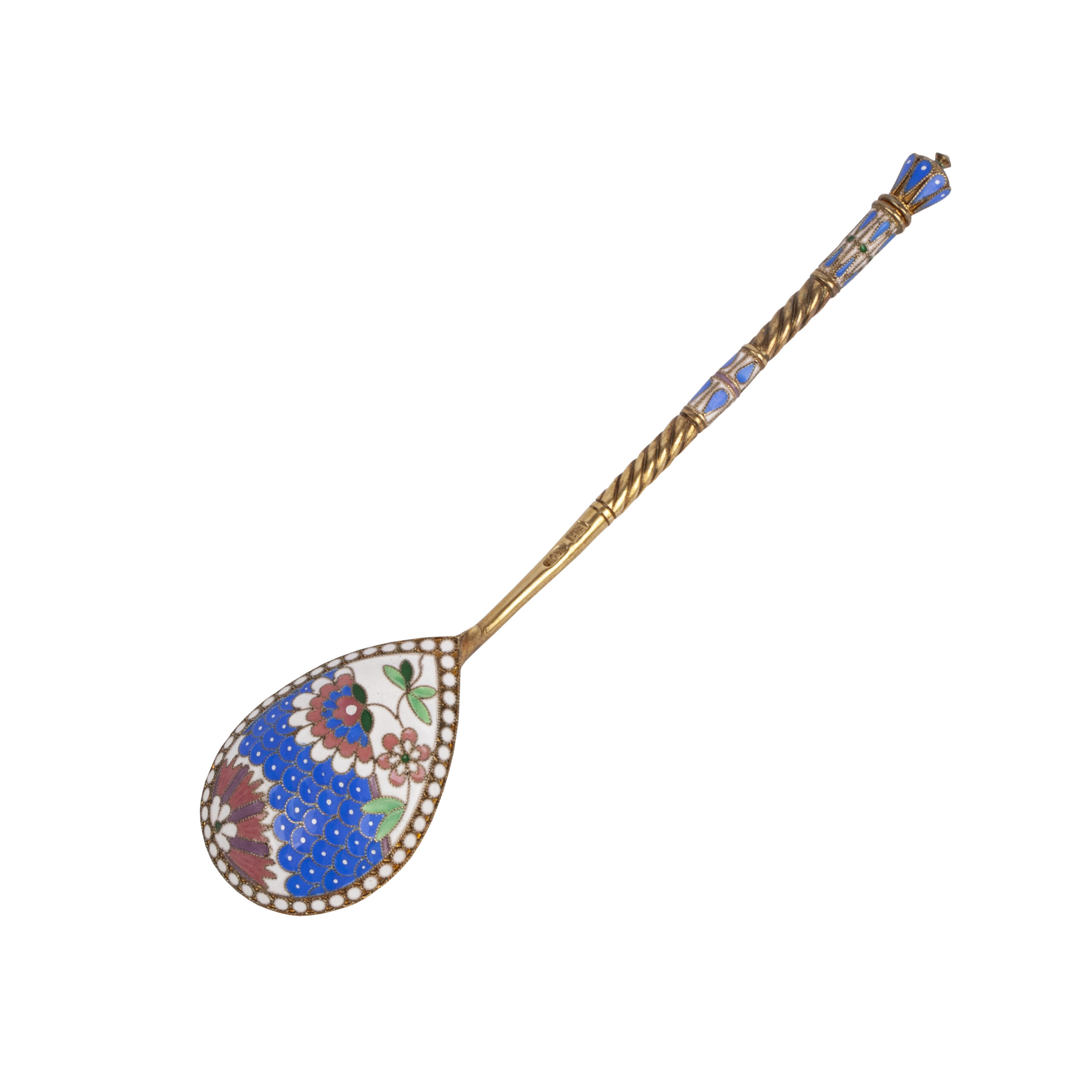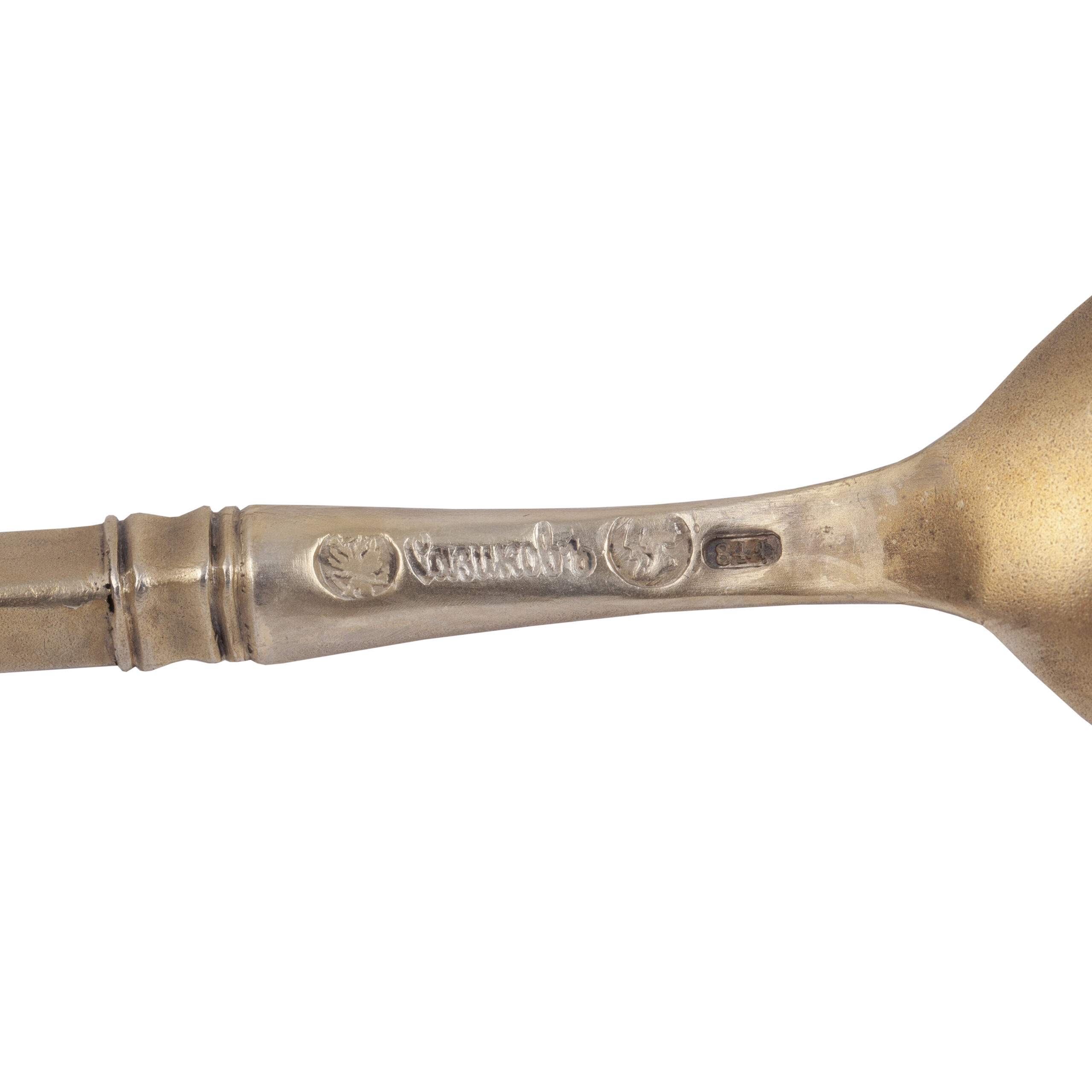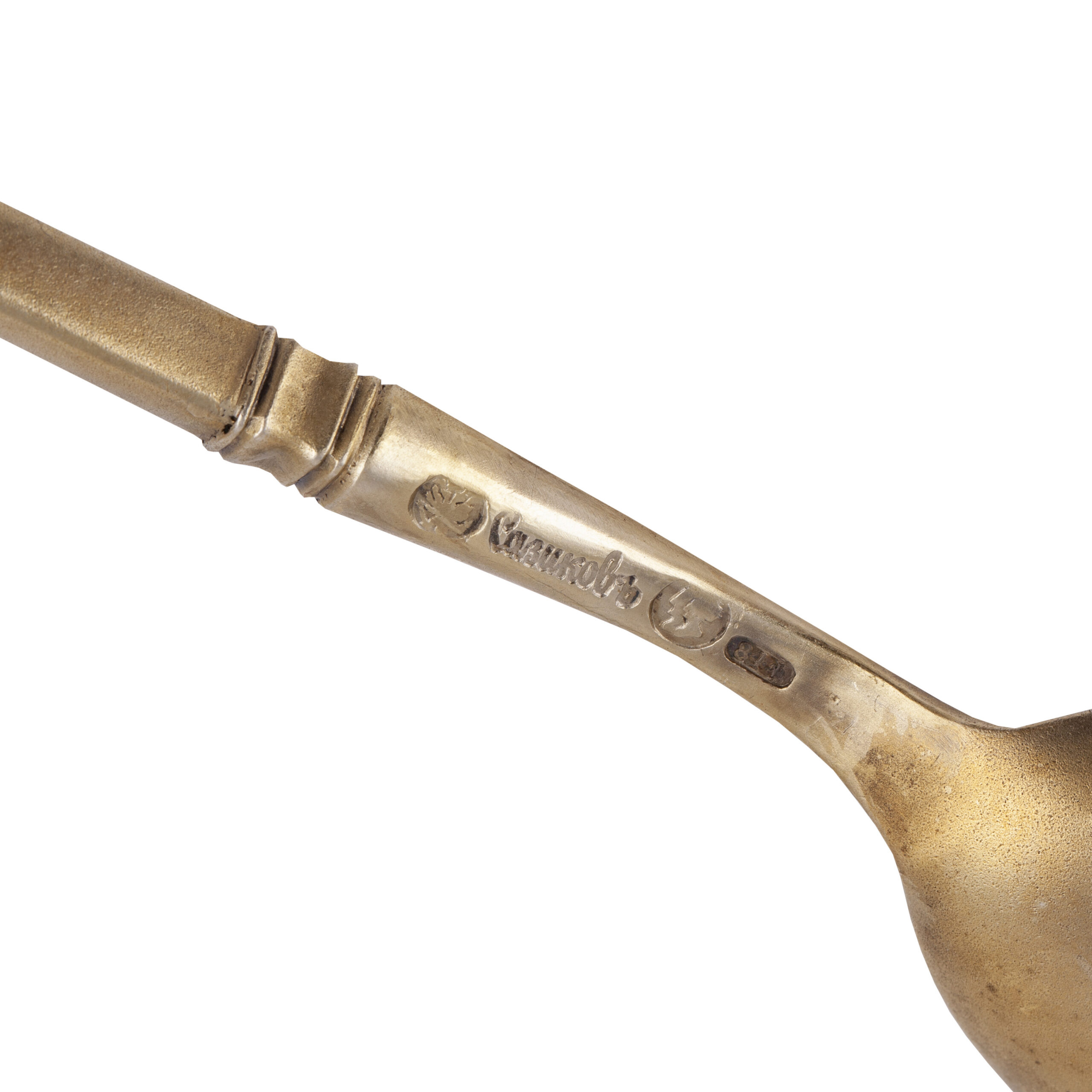 After Ignaty’s death in 1868, the firm passed to his sons Sergei, Pavel, and Valentin, with branches in Moscow and St. Petersburg, until 1887, when it was sold to Ivan Khlebnikov’s firm. This spoon exemplifies the refined artistry and technical mastery that made Sazikov a leading name in Russian silver.