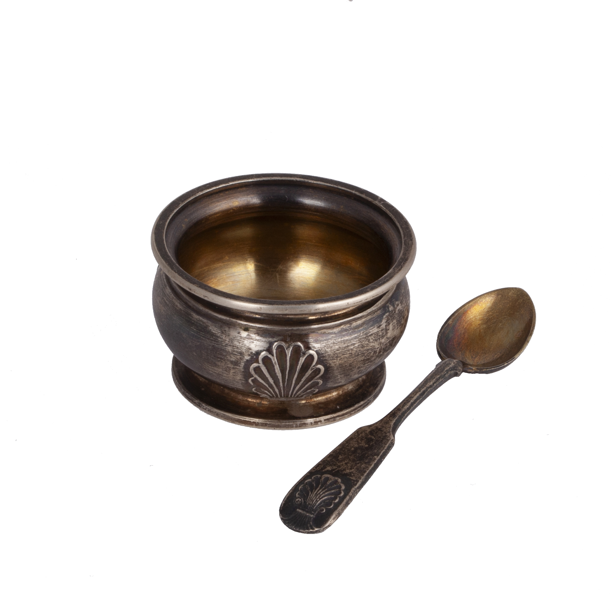 Estimate: 300-400€Fabergé Silver-Gilt Salt Cellar with Spoon