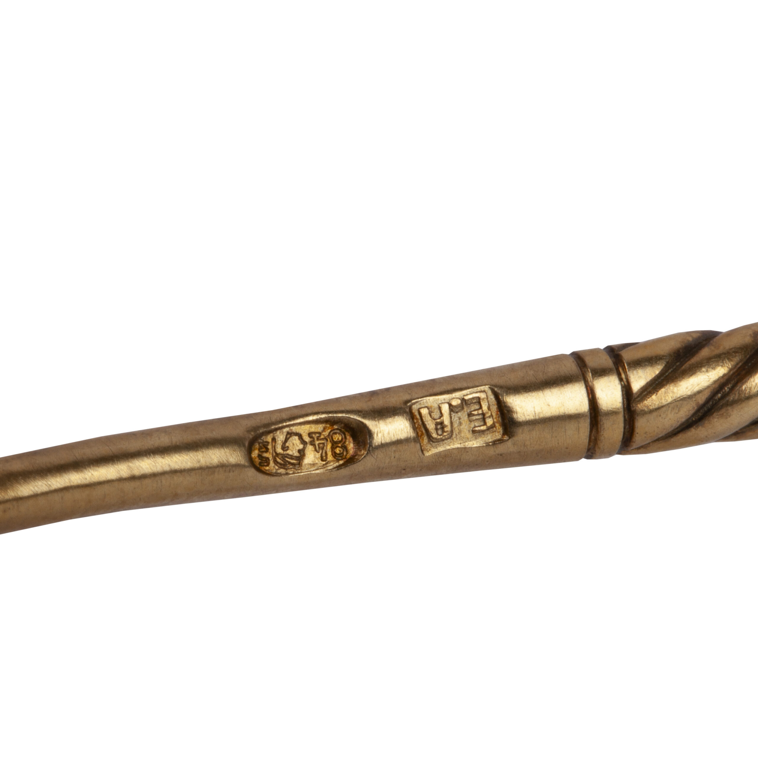 After Ignaty’s death in 1868, the firm passed to his sons Sergei, Pavel, and Valentin, with branches in Moscow and St. Petersburg, until 1887, when it was sold to Ivan Khlebnikov’s firm. This spoon exemplifies the refined artistry and technical mastery that made Sazikov a leading name in Russian silver.
