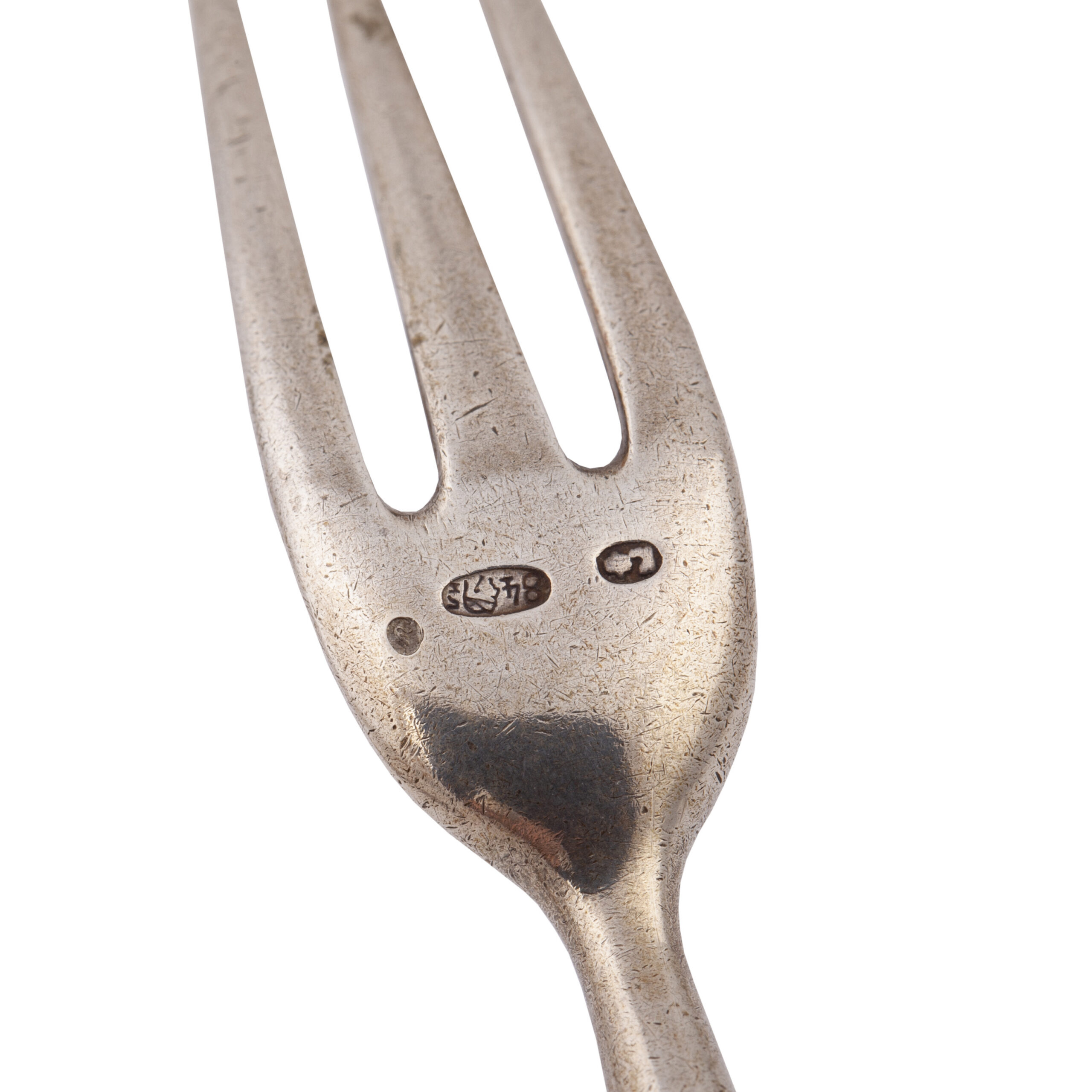 Maker’s mark of S. Pavlov, active in Moscow during the 1850s–1860s, known for producing high-quality table silver in restrained neoclassical style.