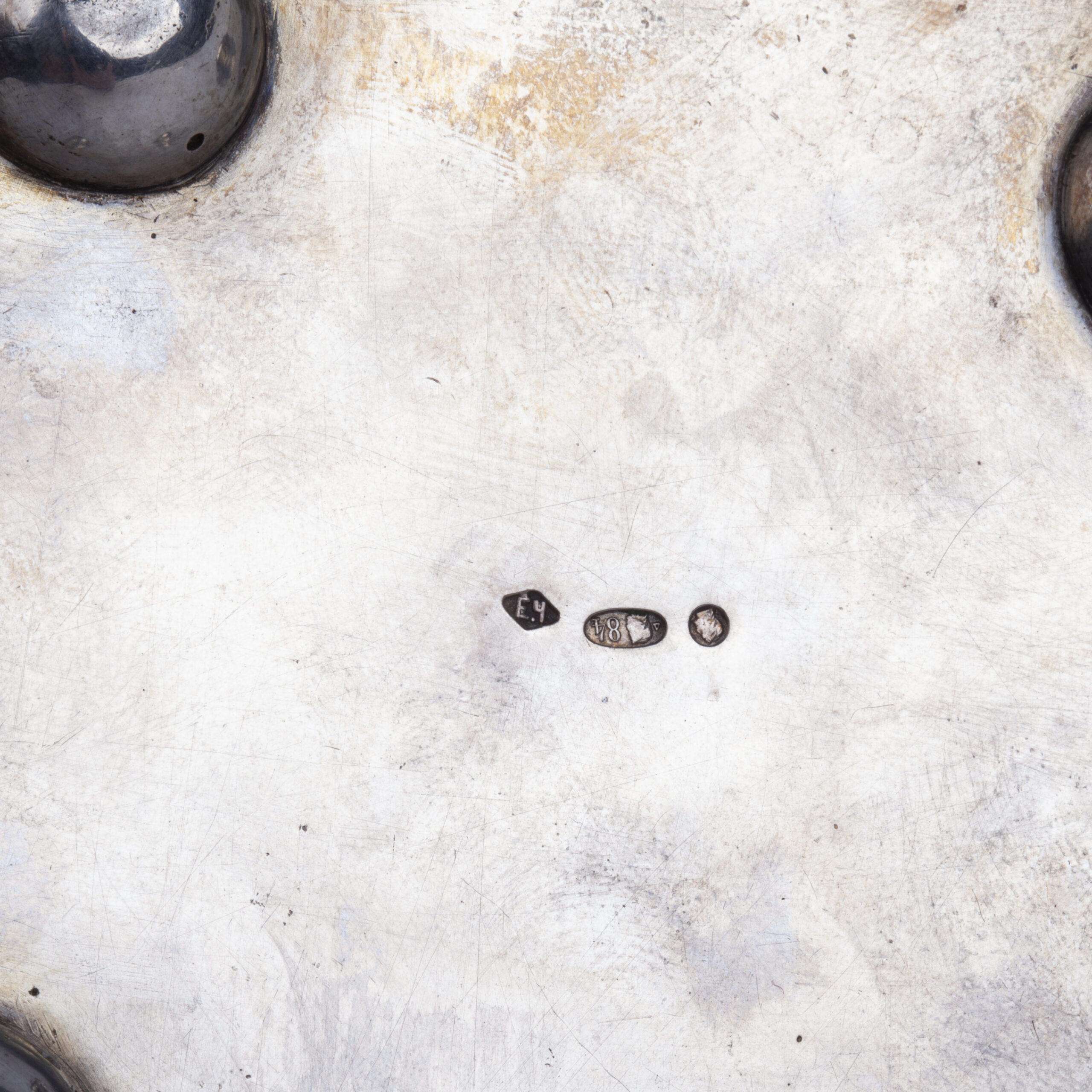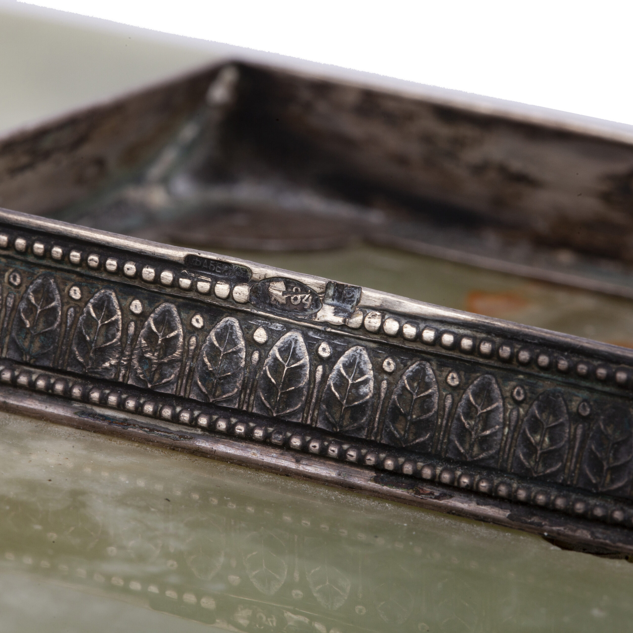 Rappoport specialized in silver and hardstone objects, including desk sets, tableware, and presentation pieces, often combining richly worked silver with materials such as crystal and nephrite. He regularly performed exclusive commissions for the firm of Carl Fabergé, the most important of which were wedding services for Emperor Nicholas II and for the dowry of Grand Duchess Xenia Alexandrovna, both in 1894.Starting price: 1500€