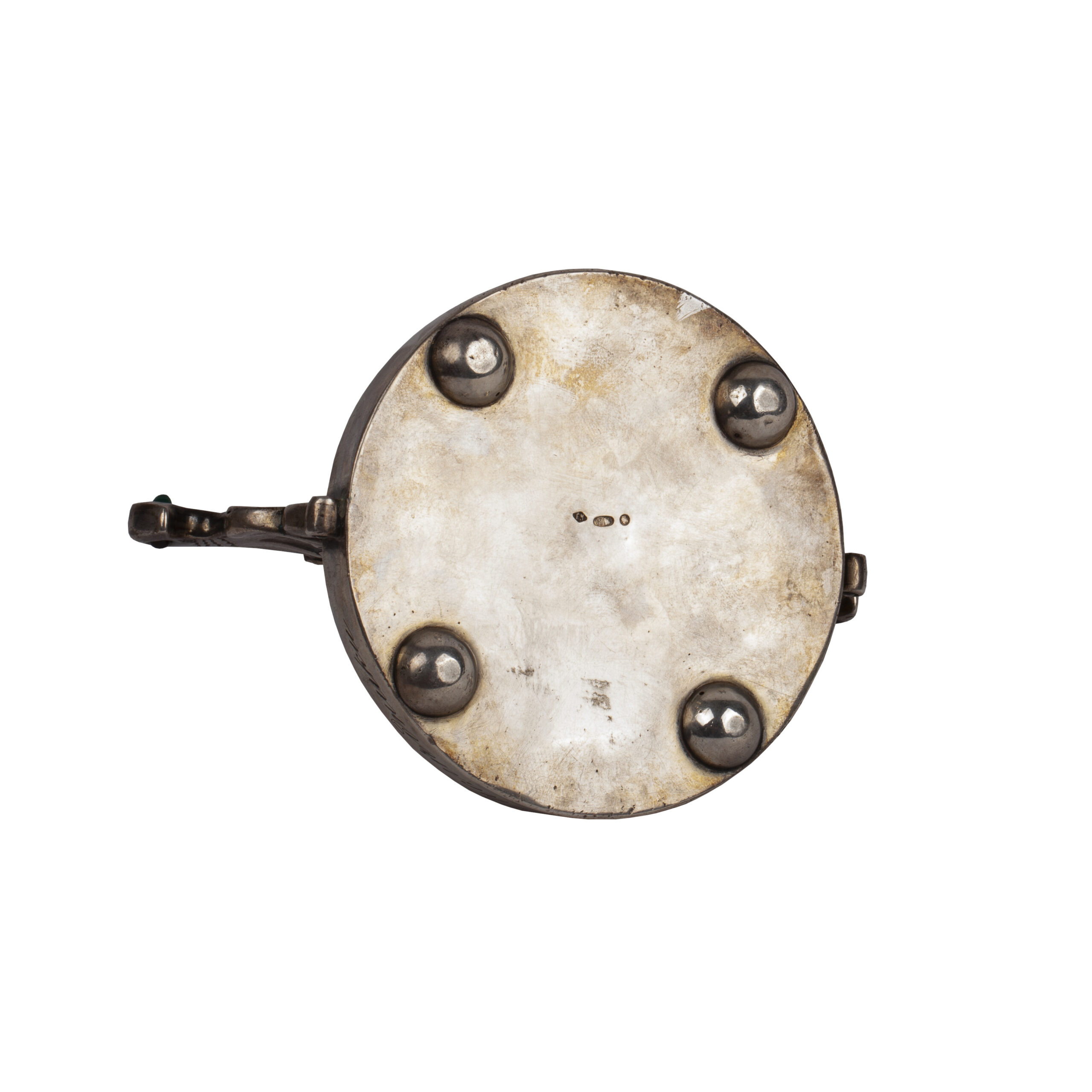 The piece bears the mark of Avenir Sumin, one of the most renowned stonecutting jewelers of late Imperial Russia and an official supplier to Empress Alexandra Feodorovna. Known for combining vividly colored hardstones with refined silver mounts, Sumin created objects that appealed to both Russian and international collectors.Starting price: 4500€