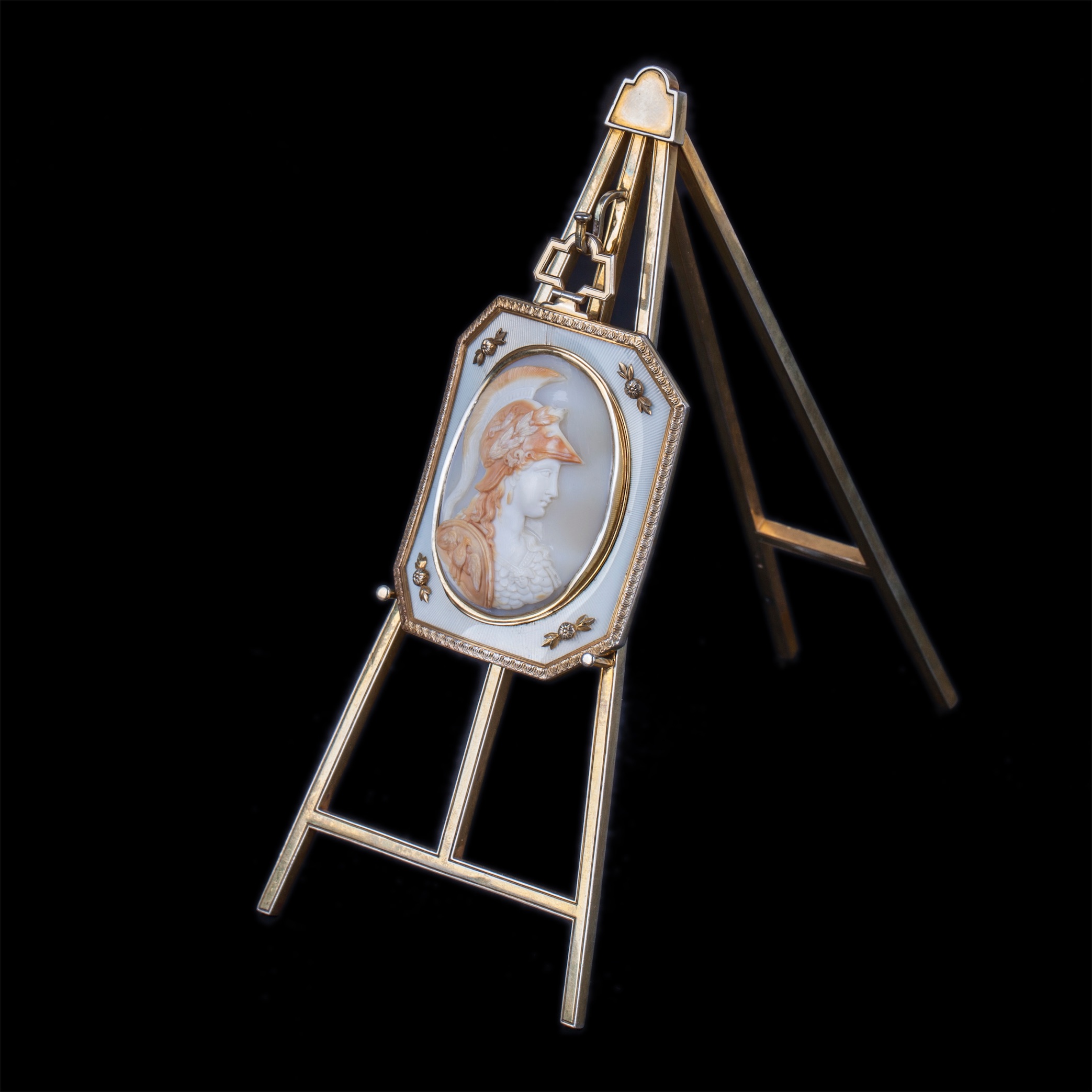 Very Rare Fabergé Medallion with a Minerva Cameo on a Stand in the Shape of an Easel by Henrik Wigström