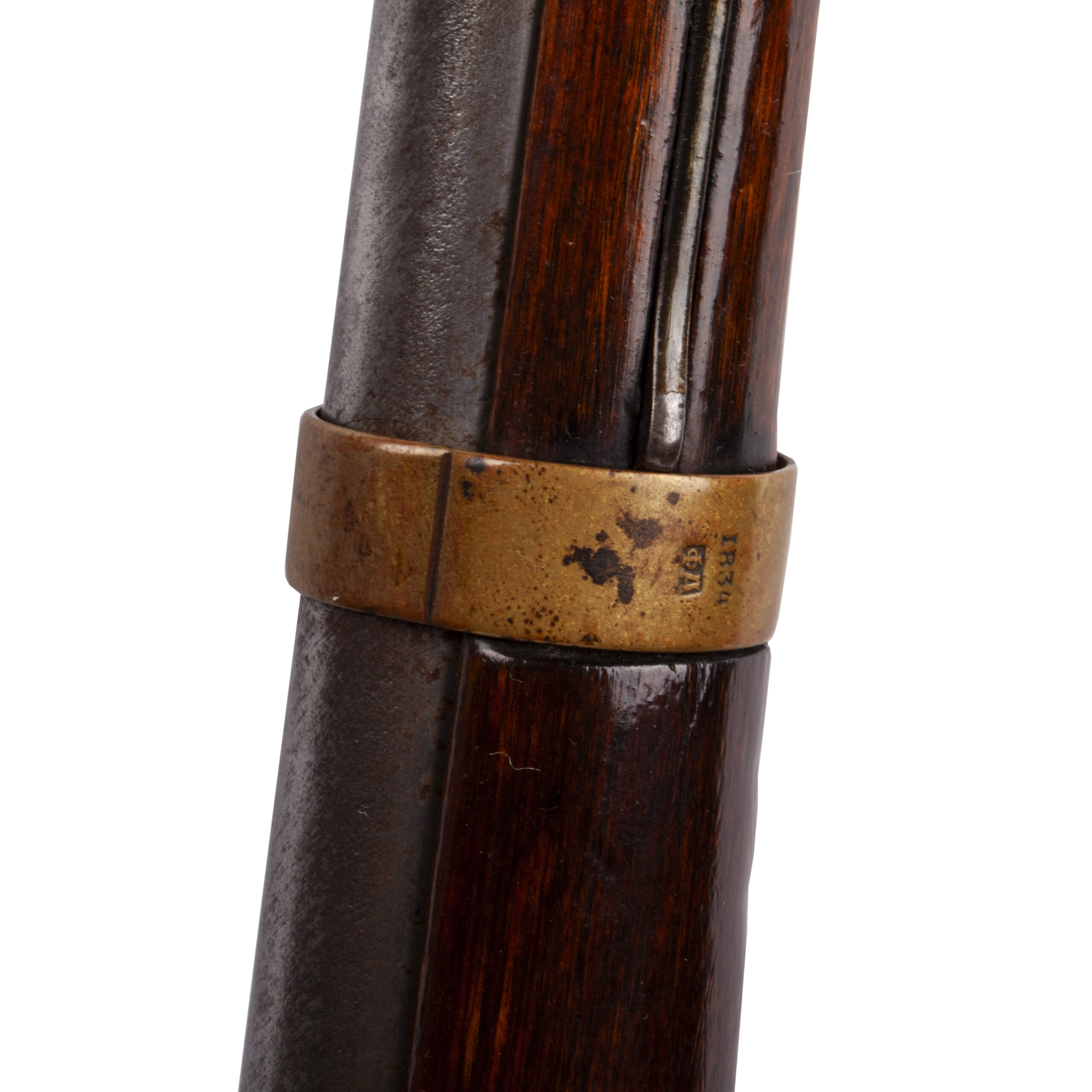 Overall length: 145 cmA fine example of the Model 1826 Russian flintlock infantry musket, produced at the Izhevsk Arms Factory between 1829 and 1839. The musket represents the standard infantry firearm of the Russian Imperial Army during the reign of Emperor Nicholas I.