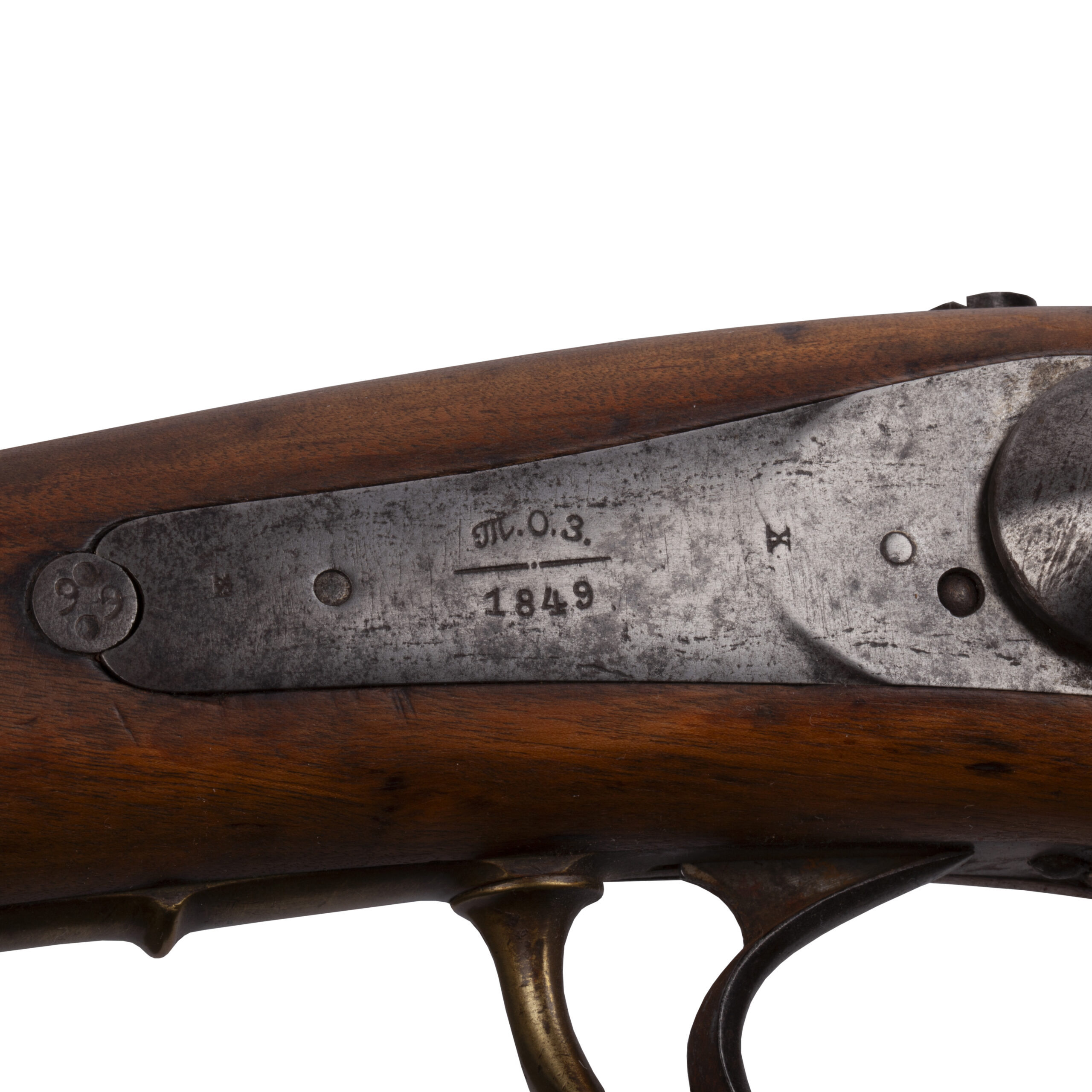 Overall length: approx. 148 cmA fine example of the Imperial Russian percussion infantry musket, Model 1845, produced at the Tula Arms Factory around the mid-19th century. This model succeeded the 1826 flintlock musket and represents the first officially adopted percussion firearm in the Russian Army.