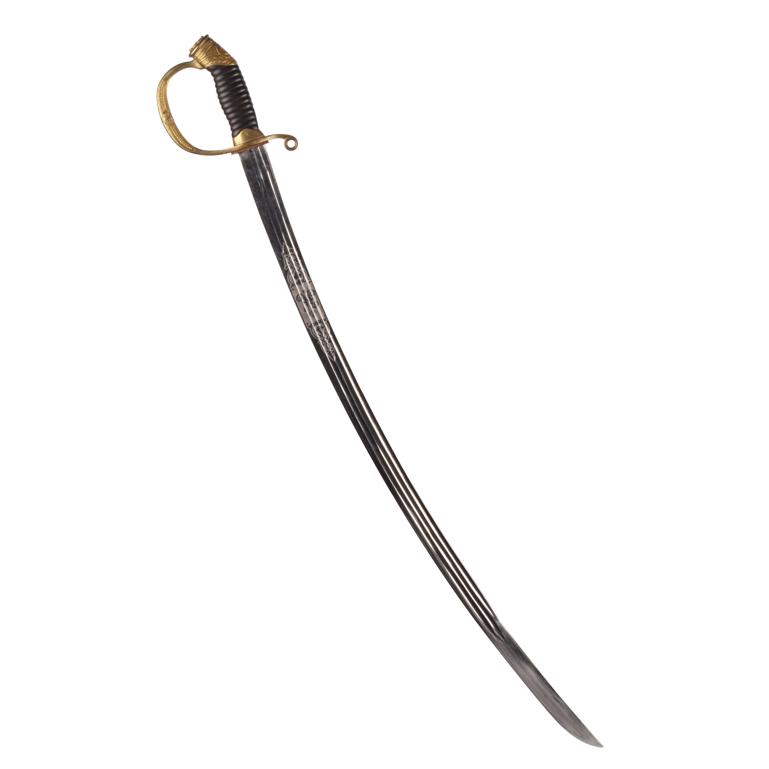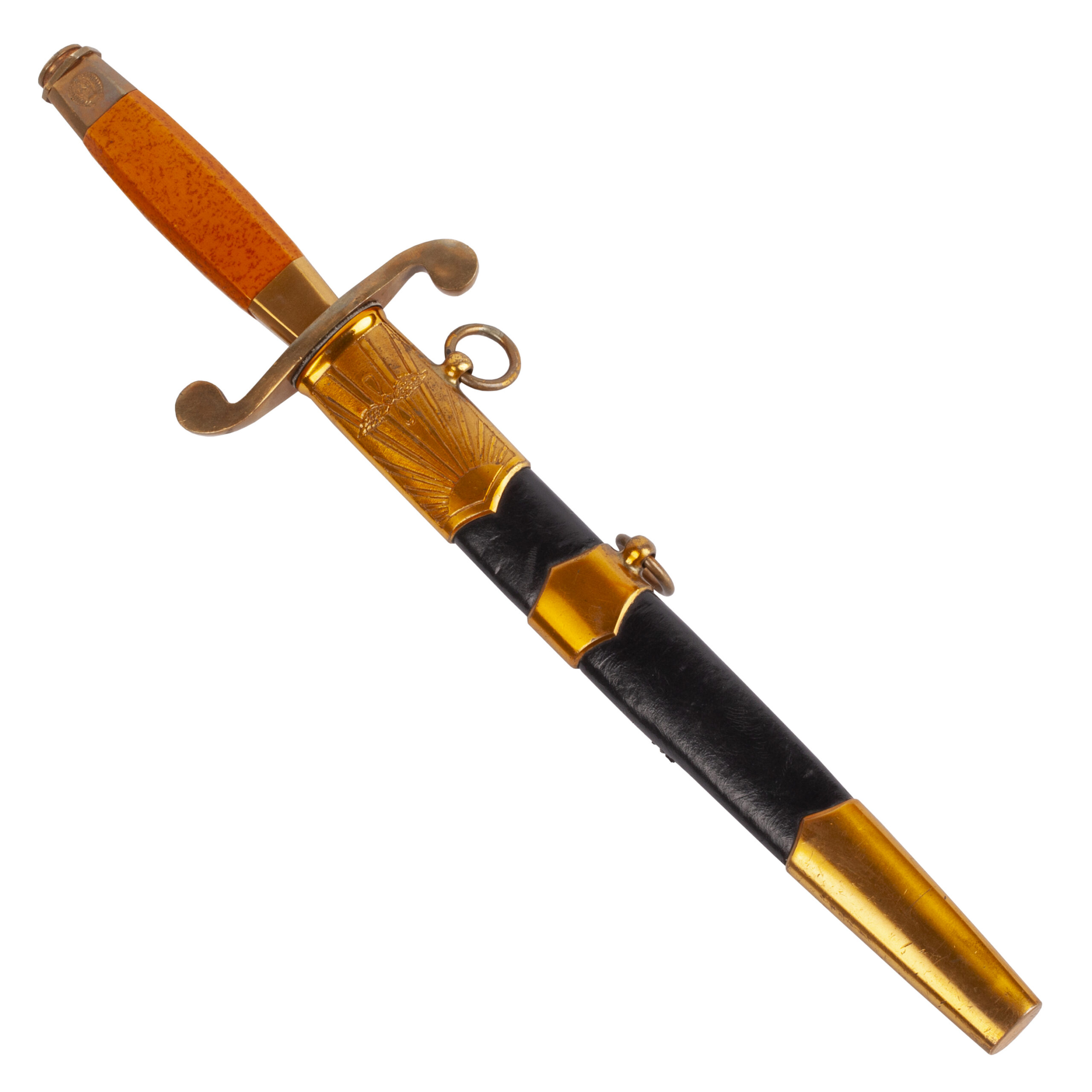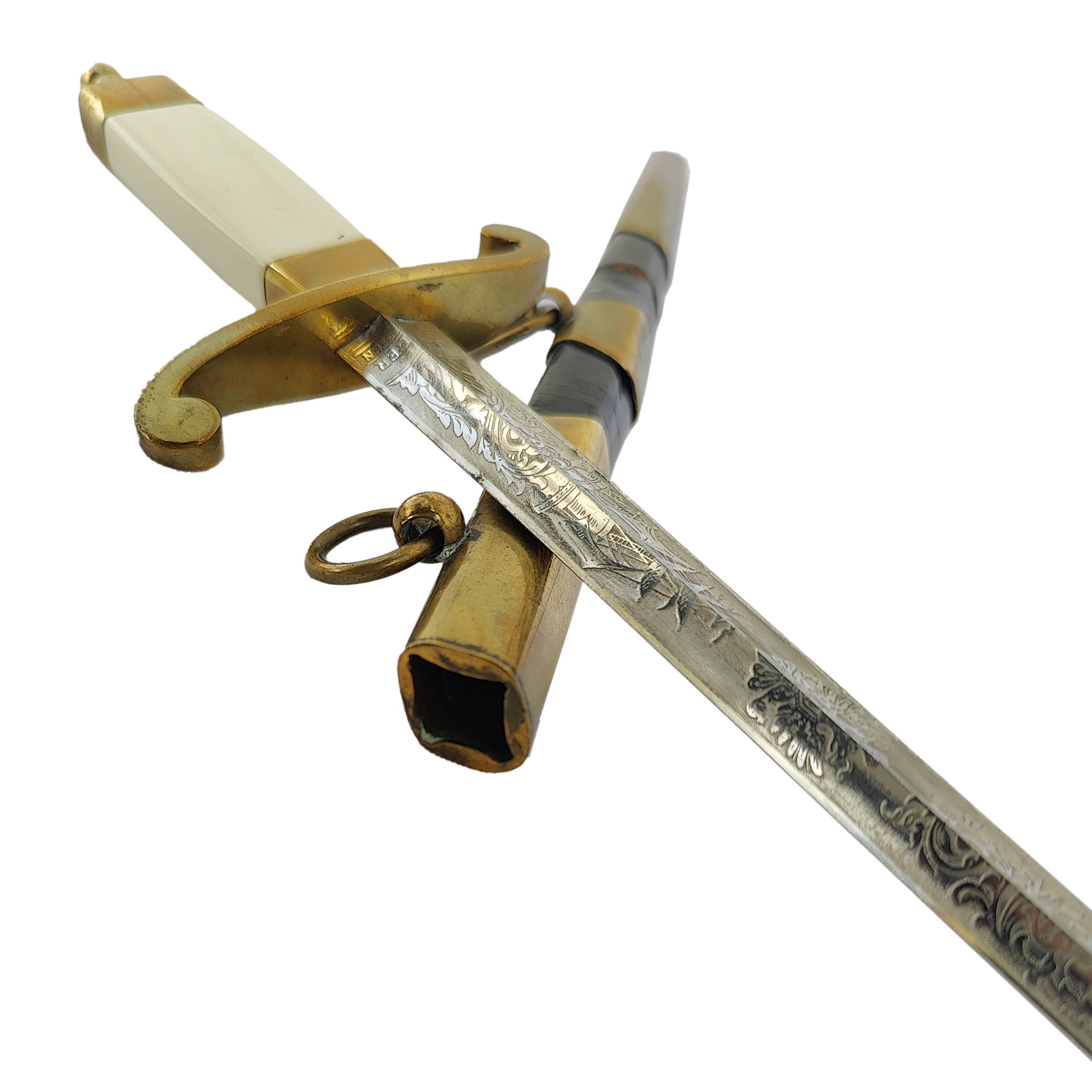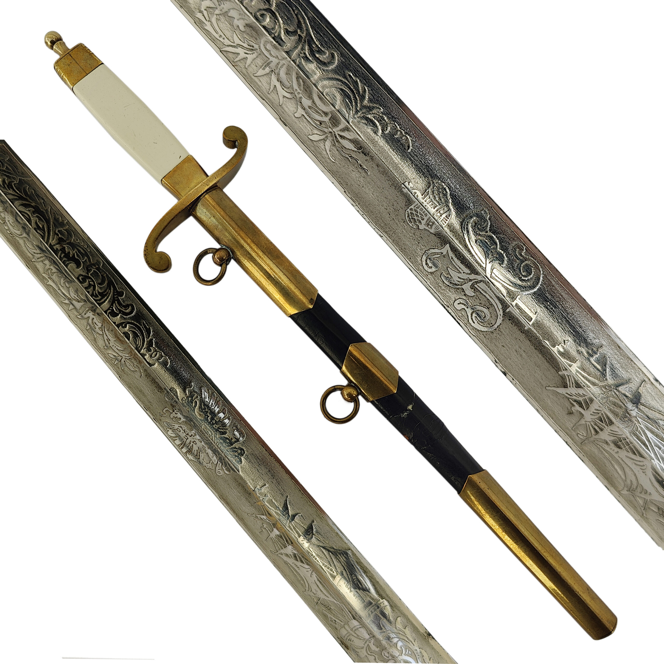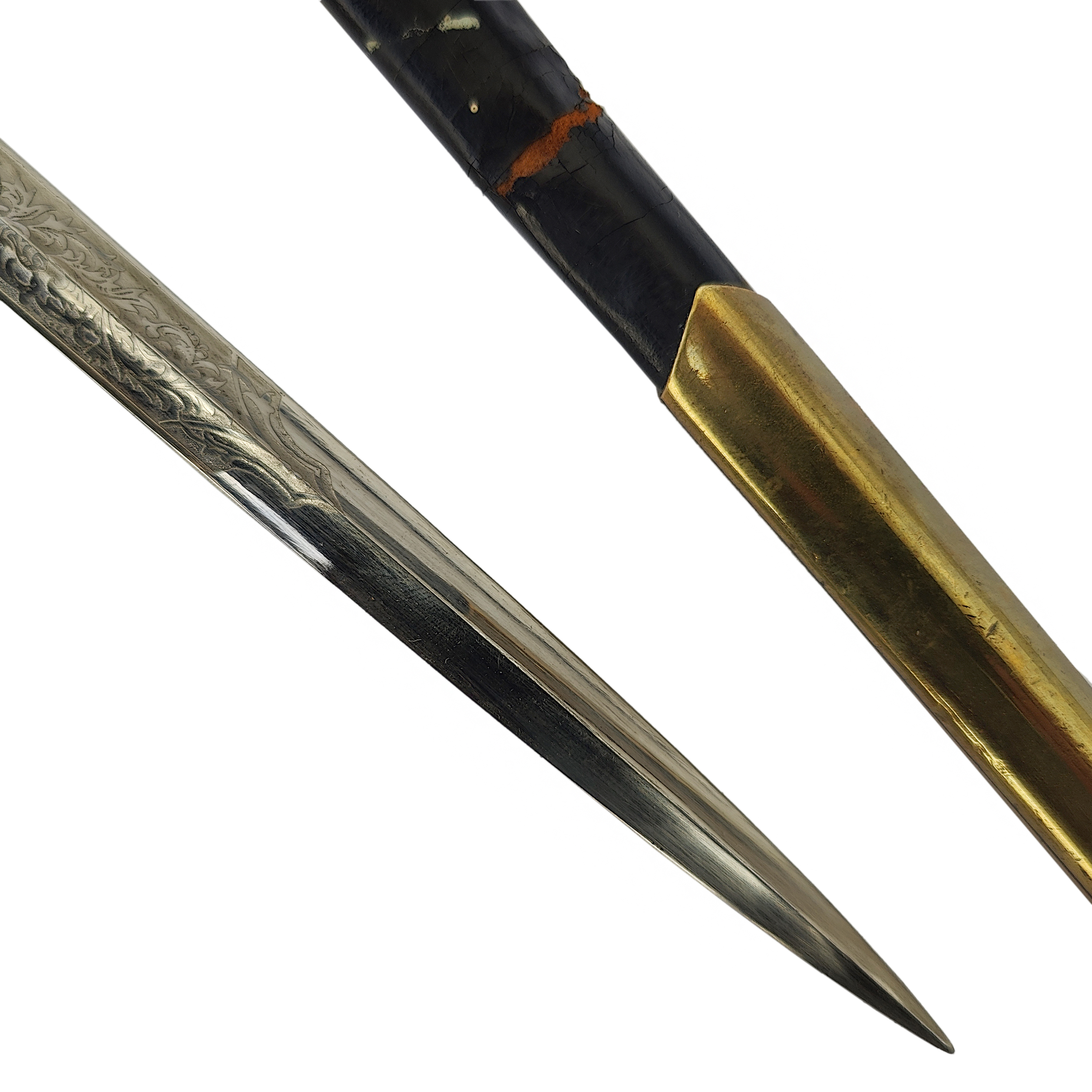 Presented with its black-lacquered metal scabbard with gilded brass fittings and two suspension rings, all in excellent preservation.