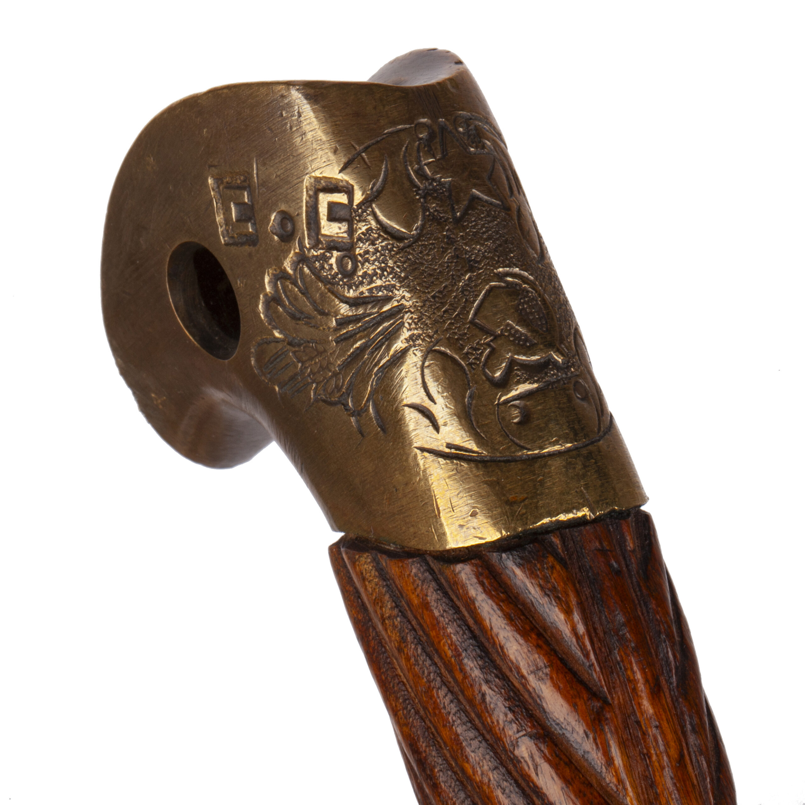 The piece gains special value from the Arabic inscription on the upper fitting: “Owner Ali. Master Hussein”, authenticating its provenance and historical significance.