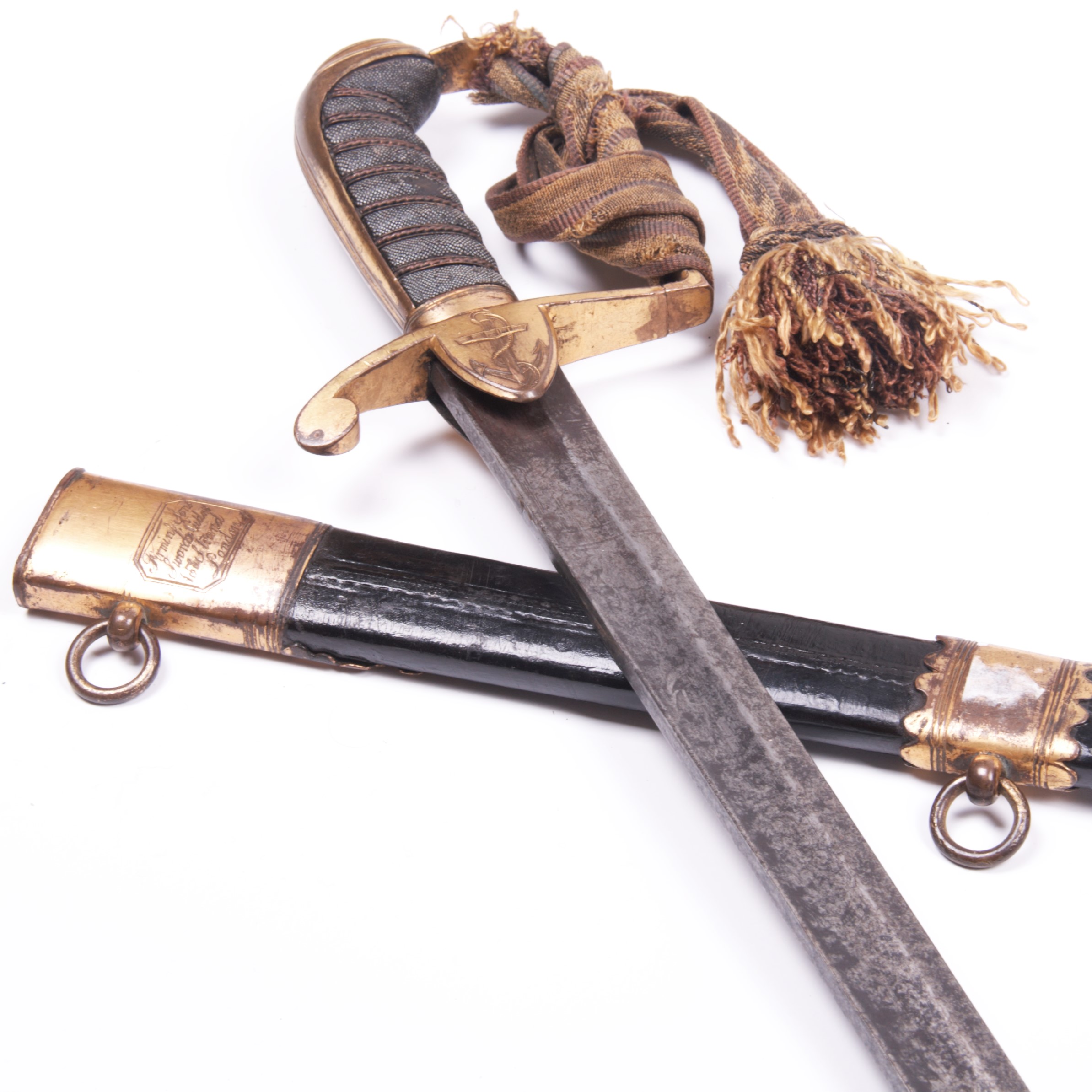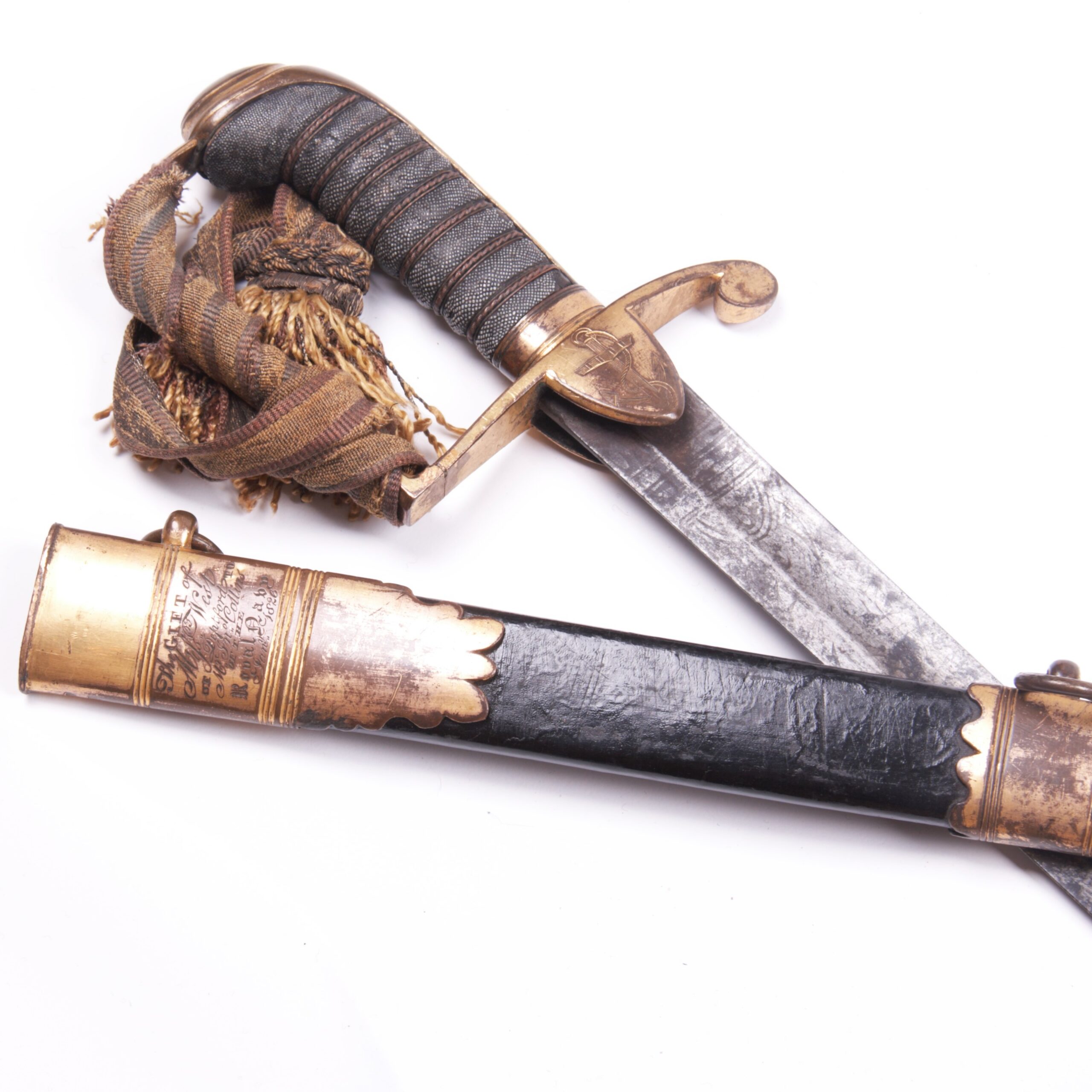 Estimate: 2500-3000€An 1805 pattern presentation Georgian Royal Navy warrant officer’s sword. The GIFT of ?? West of Deptford TO ??? Collins of THE Royal Navy, Jan 1826. Made by Firmin & Sons swords cutlery London.
