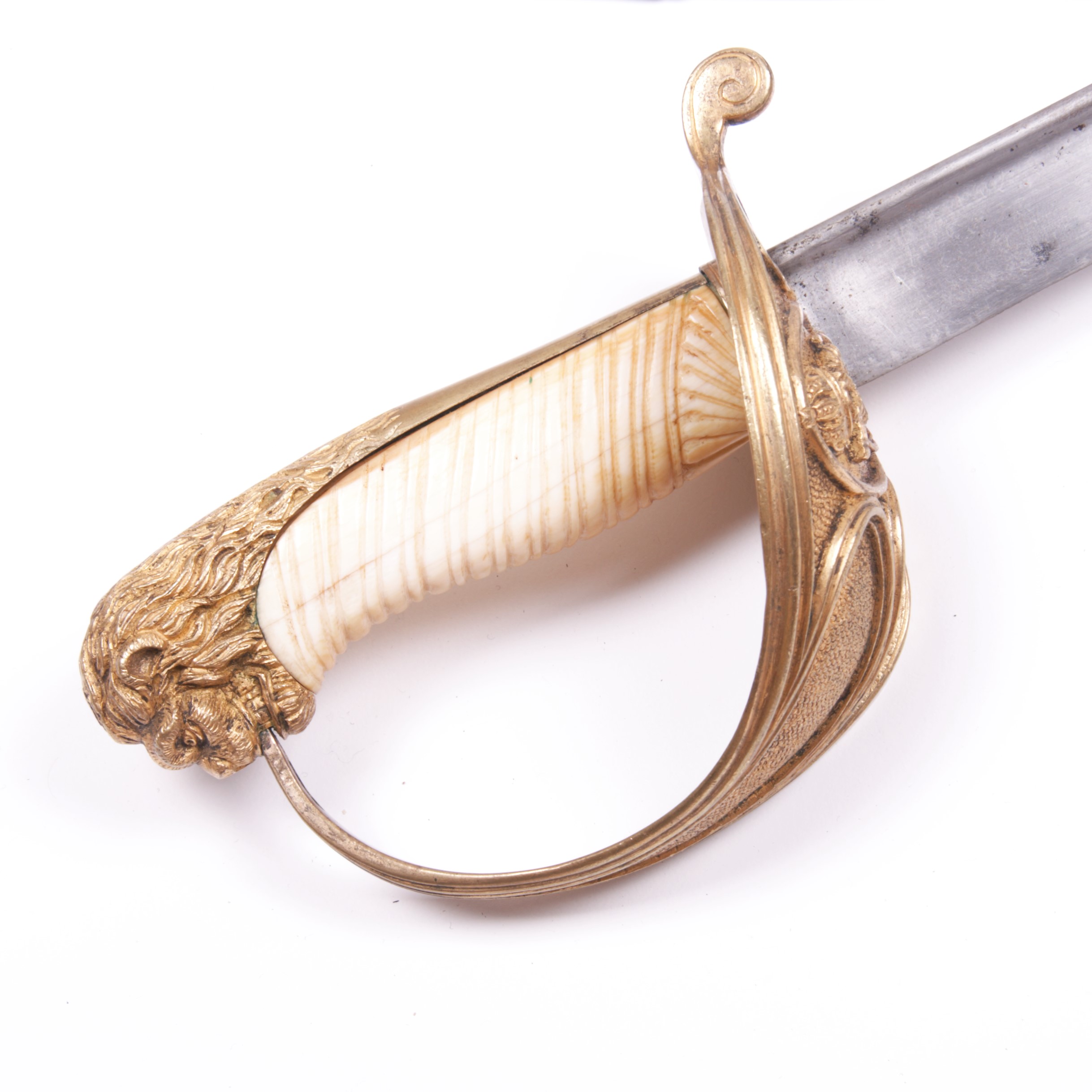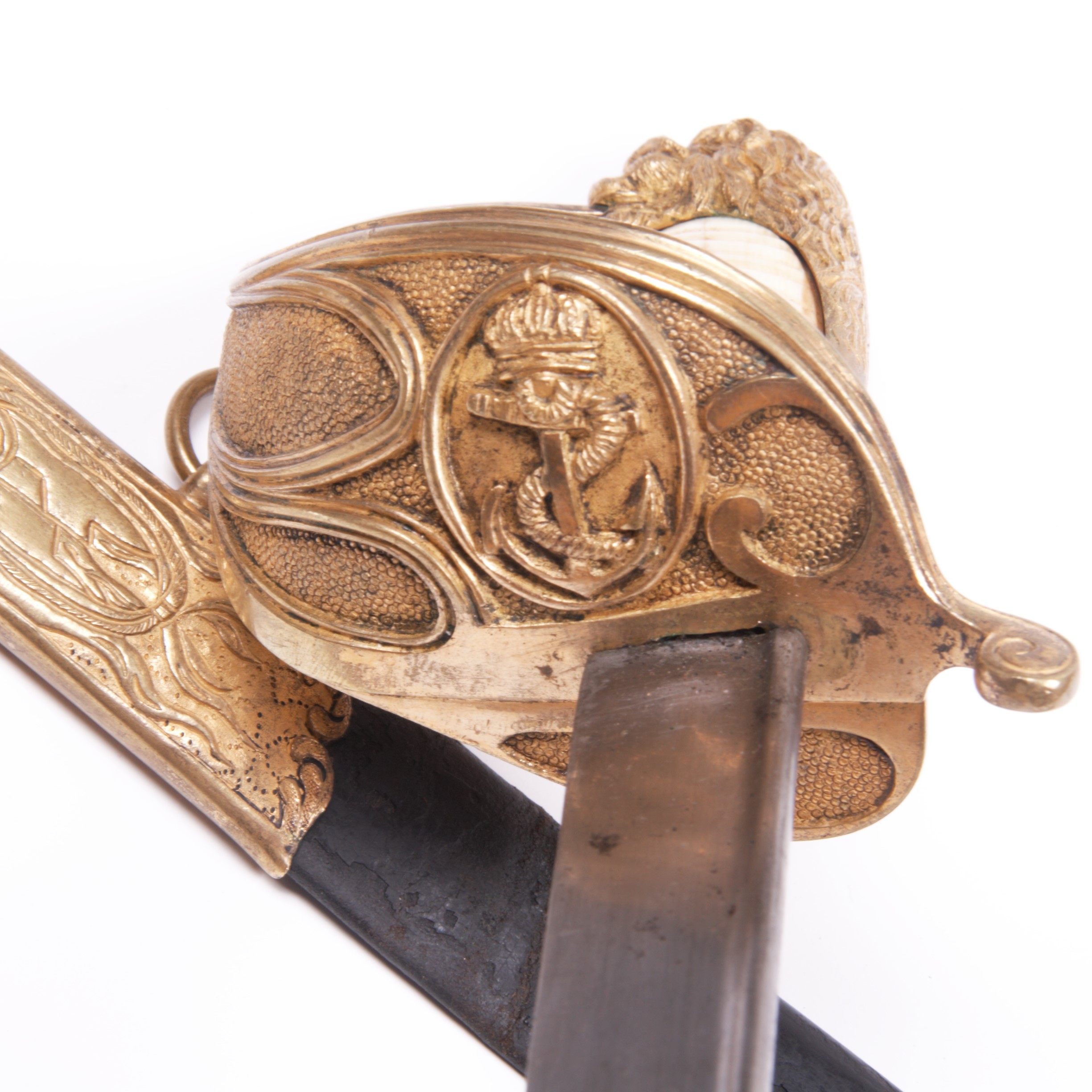 Estimate: 2500-3000€Rare and Exceptional Swedish Naval Officer’s Sword, Model M/1824 or Similar Pattern, with Highly Decorative Dolphin Scabbard Fittings and Lion-Head Pommel, Circa 1824-1844.
