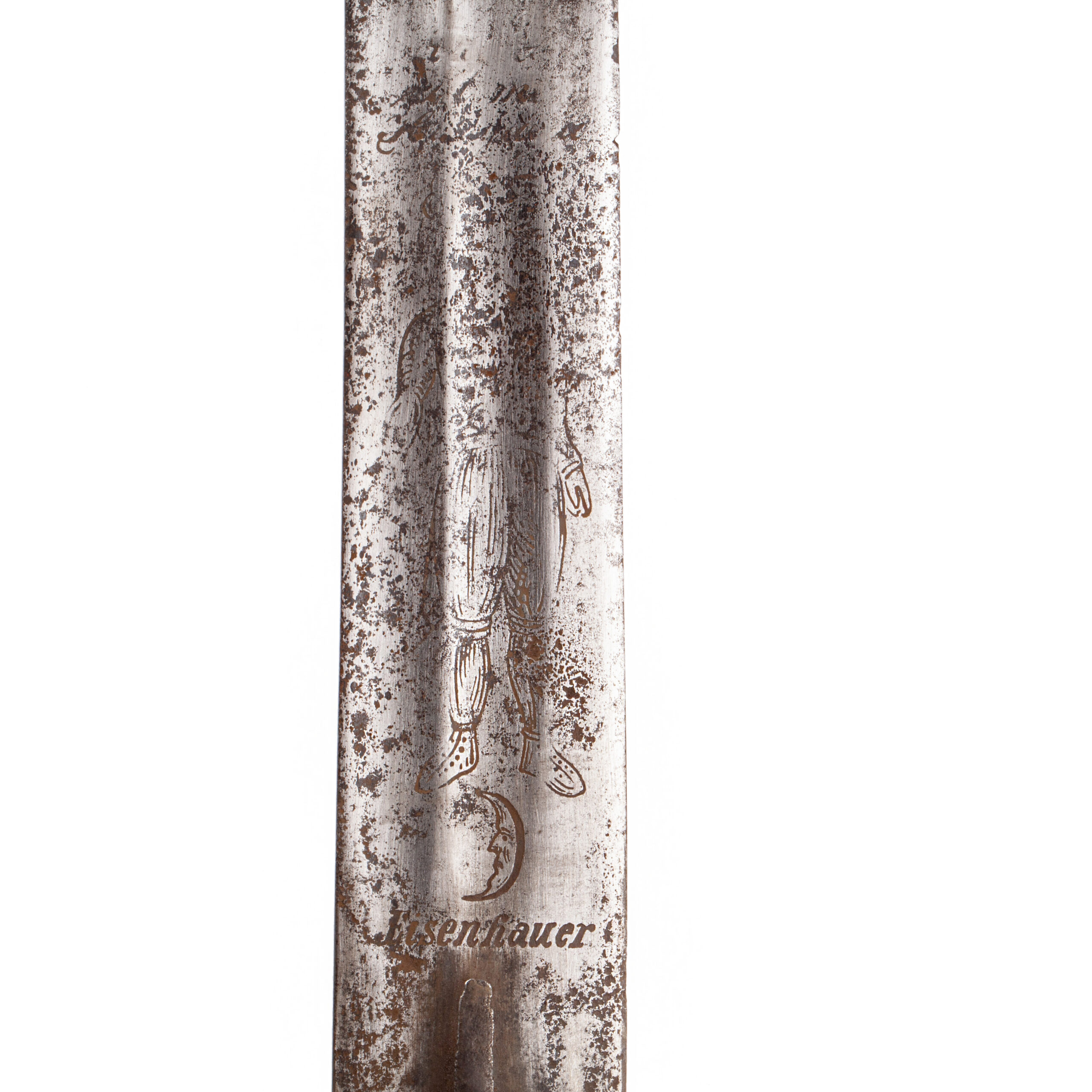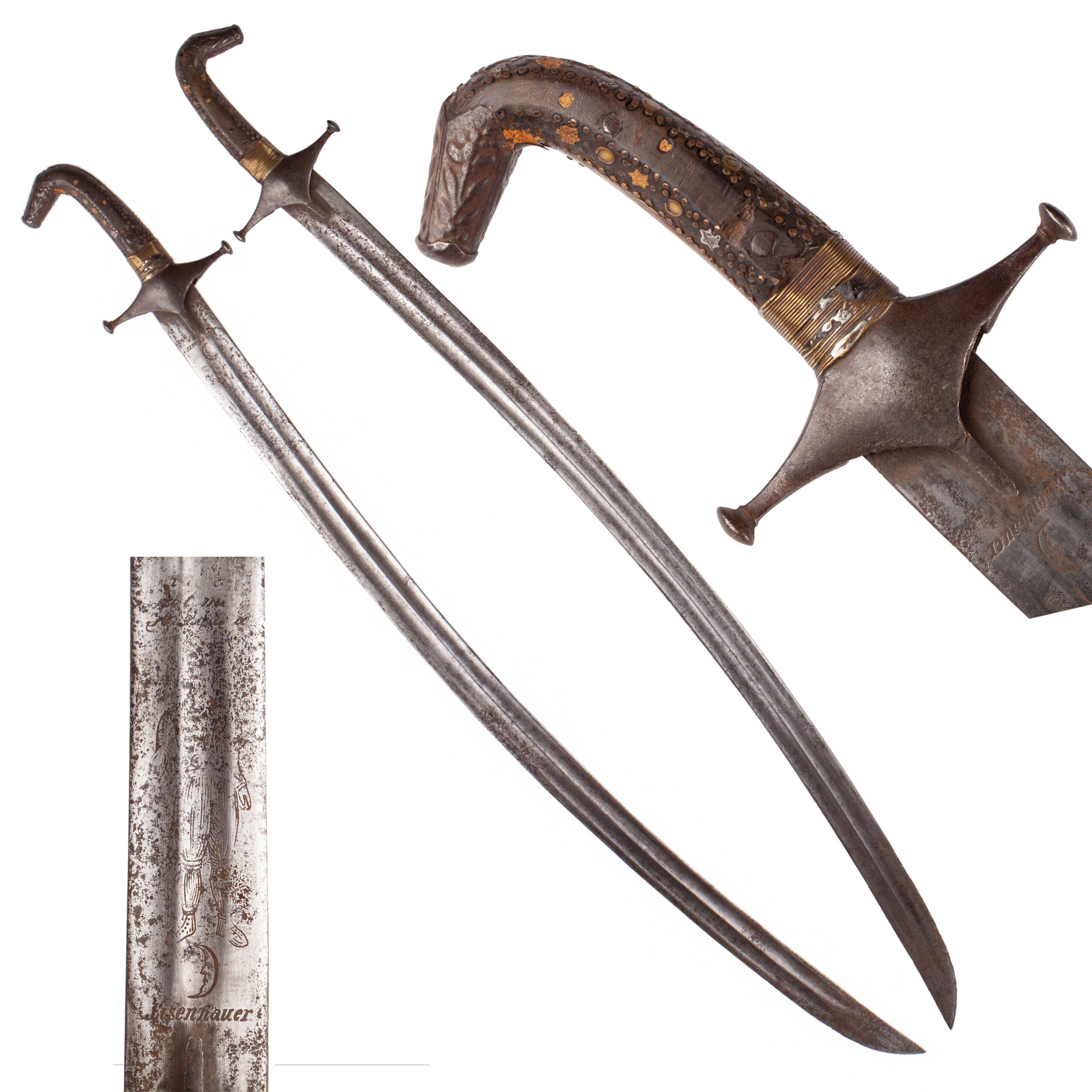 An “old-style” Solingen blade made for the Eastern market. The handle’s pommel shape is common for Syrian saifs.