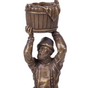 These two bronze candlesticks depict lively figures of a fish seller and an ice cream vendor, part of Evgeny Lanceray’s celebrated series of Russian tipazhi (types). Each figure balances a tub on his head, transformed into a functional candleholder.