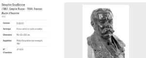 Soudbinine’s sculptures were shown in Moscow, St. Petersburg, Paris, Berlin, Venice, and New York. He created portraits of prominent figures including Maxim Gorky, Fyodor Chaliapin, and Anna Pavlova. After the Russian Revolution, he remained in Paris, later working in ceramics. His works are held in major collections such as the Musée d’Orsay (Paris), the State Russian Museum (St. Petersburg), and the Tretyakov Gallery (Moscow).