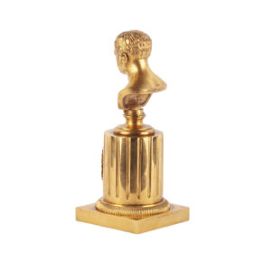 This finely executed bust of Emperor Alexander I was created by Fedor Kovshenkov, a master bronzeworker who had once been a serf. In 1822, the Emperor himself recognized Kovshenkov’s talent and freed him from serfdom, appointing him as a bronze master during the construction of the Kazan Cathedral.