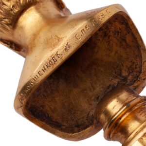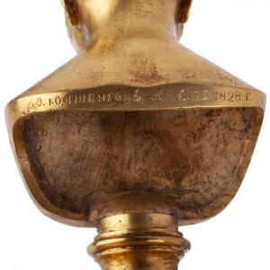 In 1826, as an expression of gratitude, Kovshenkov produced his first bust of Alexander I, and he returned to this theme multiple times throughout his career. Several examples in bronze and cast iron are preserved today in the State Russian Museum, alongside his busts of Emperor Nicholas I and Grand Duke Mikhail Pavlovich. A comparable piece is held in the State Literary-Memorial and Natural Museum-Reserve of Alexander Pushkin “Boldino” in the Nizhny Novgorod region.