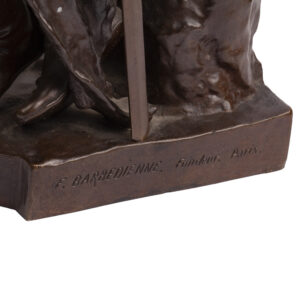 This exceptional bronze, cast by the renowned Barbedienne Foundry, represents “Le Courage Militaire” (Military Courage) — one of the four allegorical figures created by Paul Dubois for the cenotaph of General Juchault de La Moricière in the Cathedral of Nantes.