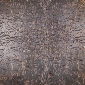 Dimensions: 23 × 20 × 6 cmThe lid features an oval lacquer miniature of a peasant couple offering bread and salt with produce. The album’s binding is framed with malachite panels and gilded metal and fitted with a clasp. A striking combination of Russian lacquer painting and stone-inlaid décor from the late 19th century.