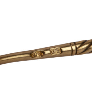 After Ignaty’s death in 1868, the firm passed to his sons Sergei, Pavel, and Valentin, with branches in Moscow and St. Petersburg, until 1887, when it was sold to Ivan Khlebnikov’s firm. This spoon exemplifies the refined artistry and technical mastery that made Sazikov a leading name in Russian silver.