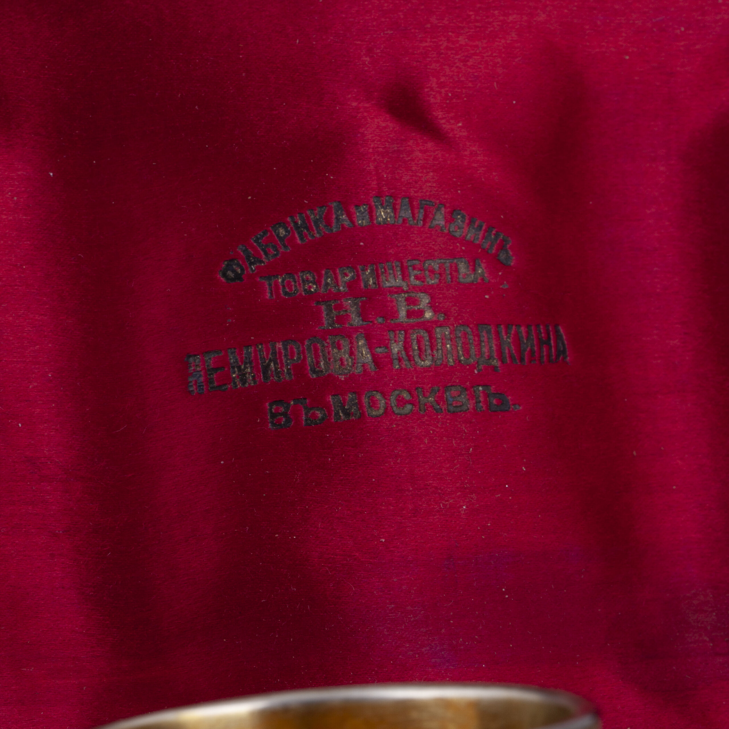 The present set was retailed by the Court Supplier firm of Ivan Khlebnikov, which employed many graduates of the Stroganov School.
