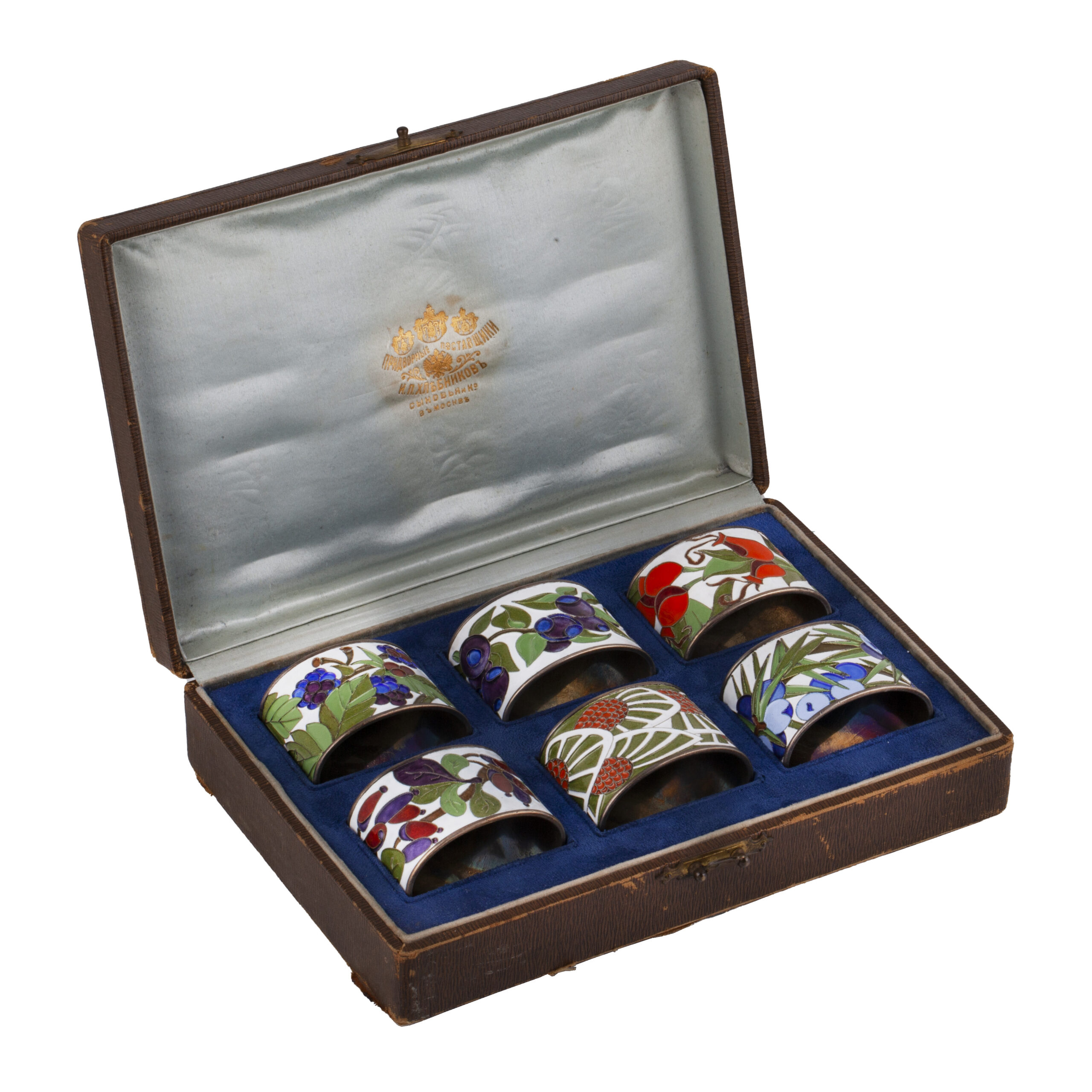 Imperial Stroganov school. Set of Napkin Rings in Original Case.