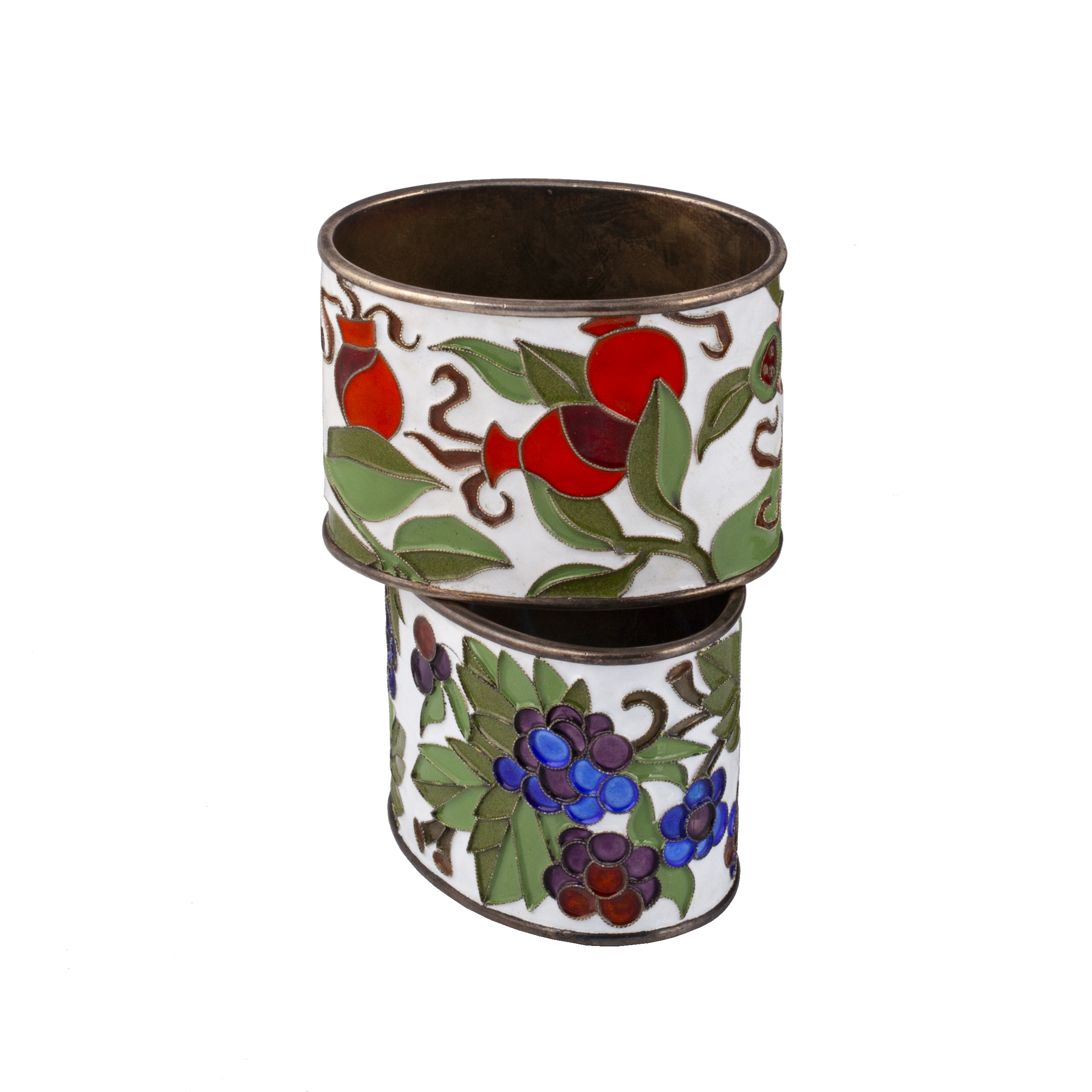 Silver, polychrome cloisonné enamel.