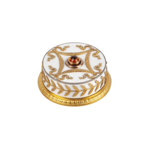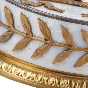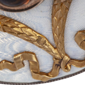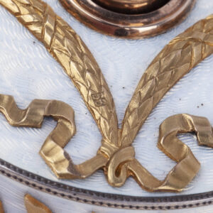A similar bell push by Wigström, with related enamel decoration and laurel motifs, was sold at Sotheby’s, London, Russian Sale – Works of Art, Fabergé, 2007, lot 499.