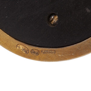 Marked on the underside with Fabergé and workmaster’s initials H.W. for Henrik Wigström, and St. Petersburg assay marks for 56 zolotniks (15ct gold) and 88 silver zolotnik.