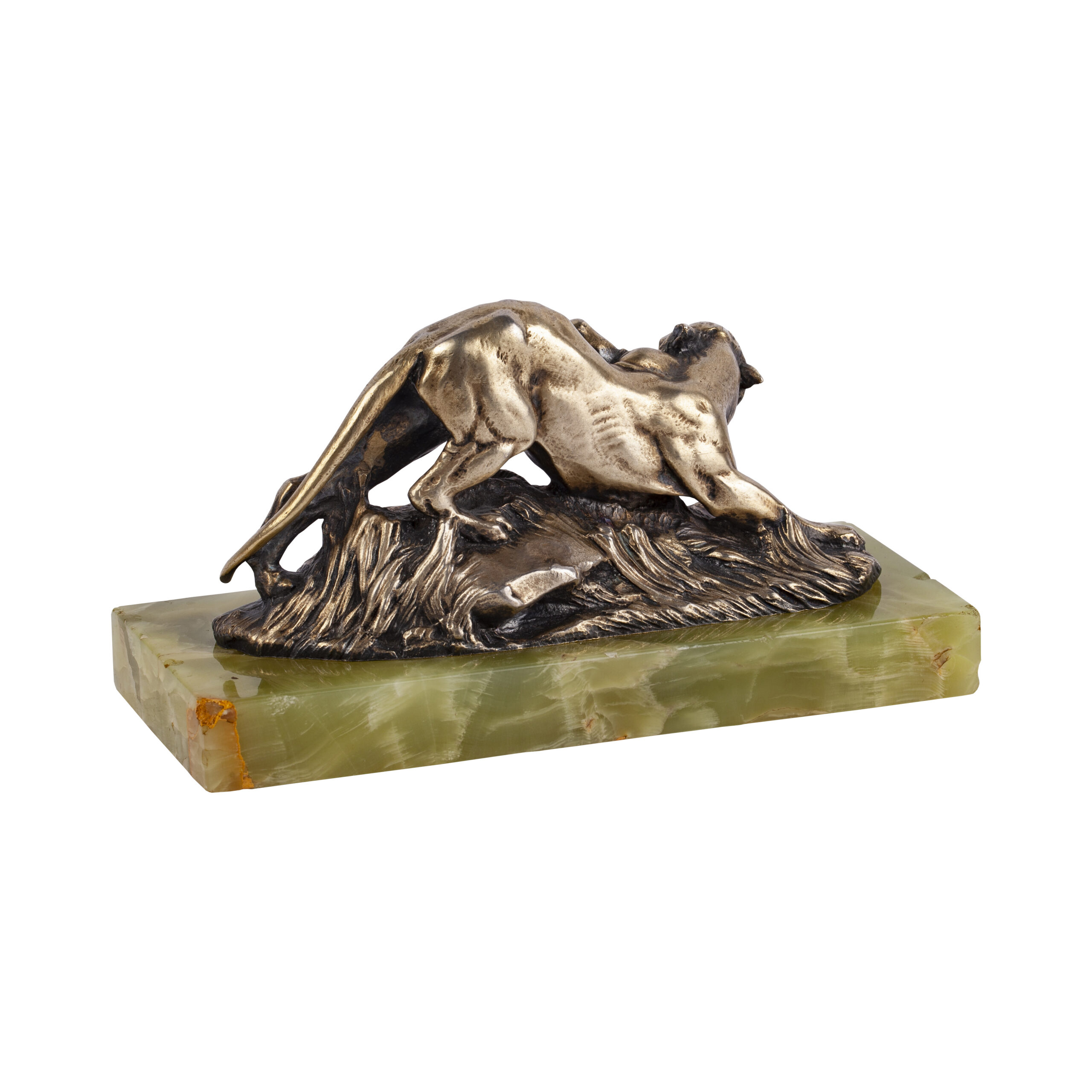 The use of the chryselephantine technique — a combination of precious metal and white material — has its origins in antiquity and enjoyed renewed popularity in European decorative arts during the Art Deco period.