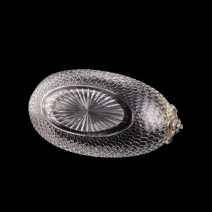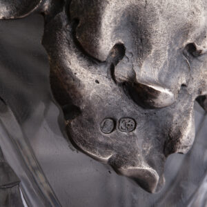 A rare Art Nouveau–style kovsh from the Moscow branch of the House of Fabergé. The crystal bowl, cut with a honeycomb pattern, is mounted in silver and features a sculptural handle in the form of a mermaid holding a garland. The elegant balance of movement and material exemplifies Fabergé’s fascination with nature and myth, as well as the refined technical skill of the firm’s Moscow silversmiths.