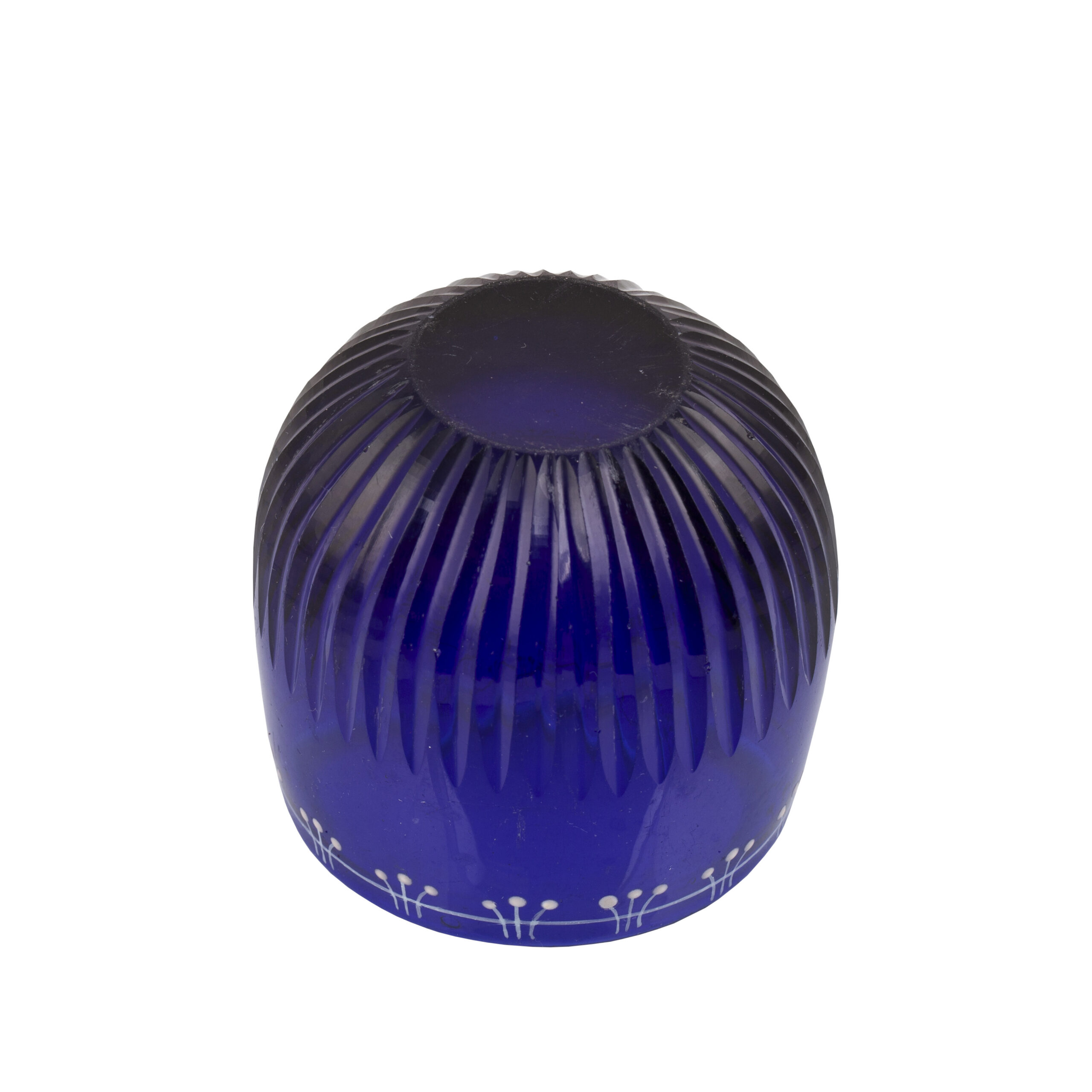 Transparent turquoise-blue glass; gilding and polychrome enamel.