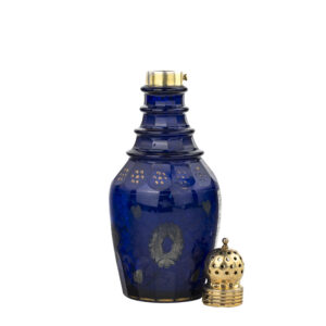 . Cobalt-blue glass, engraved and enameled; gilded pierced silver lid