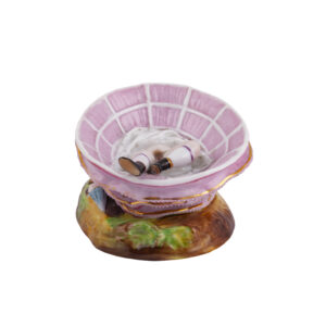 This humorous and somewhat risqué piece depicts a young woman who has fallen backward into an oversized pink shell, her legs playfully visible in the air. Such figurines, often called “hooligan” or “frivolous” porcelain, were produced in small workshops for private clients, contrasting sharply with the more formal and academic porcelain of major factories like Gardner or Kuznetsov.