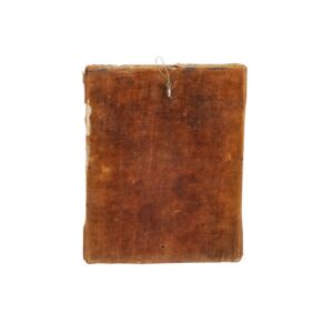 The underlying icon, likely dating to the 17th century, retains the expressive intensity of early post-Byzantine Balkan iconography, characterized by elongated proportions, austere modeling, and a deep spiritual gravity.