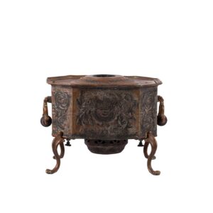 Height: 43.5 cmA rare samovar crafted by the Buch Brothers manufactory, operating in Warsaw during the period when Poland was part of the Russian Empire. This example, distinguished by its sculptural form and intricate metalwork, represents one of the few surviving samovars attributed to this renowned maker.
