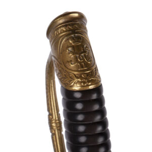 A fine and scarce Imperial Russian officer’s shashka, Model 1913, fitted with a German-manufactured blade by Alex Coppel of Solingen. Produced before World War I for the Imperial cavalry under Tsar Nicholas II, this example combines refined Solingen craftsmanship with distinct Russian Imperial symbolism.