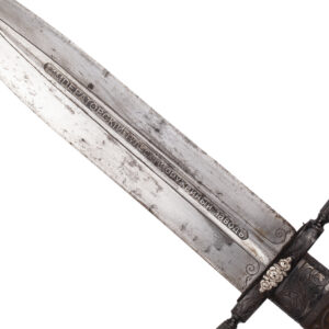 A fine and impressive Imperial Russian hunting dagger, produced at the Imperial Tula Arms Factory, as indicated by the clear inscription on the blade: “ИМПЕРАТОРСКИЙ ТУЛЬСКИЙ ОРУЖЕЙНЫЙ ЗАВОДЪ” (“Imperial Tula Arms Factory”).
