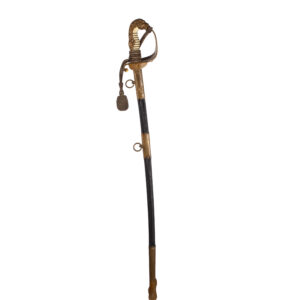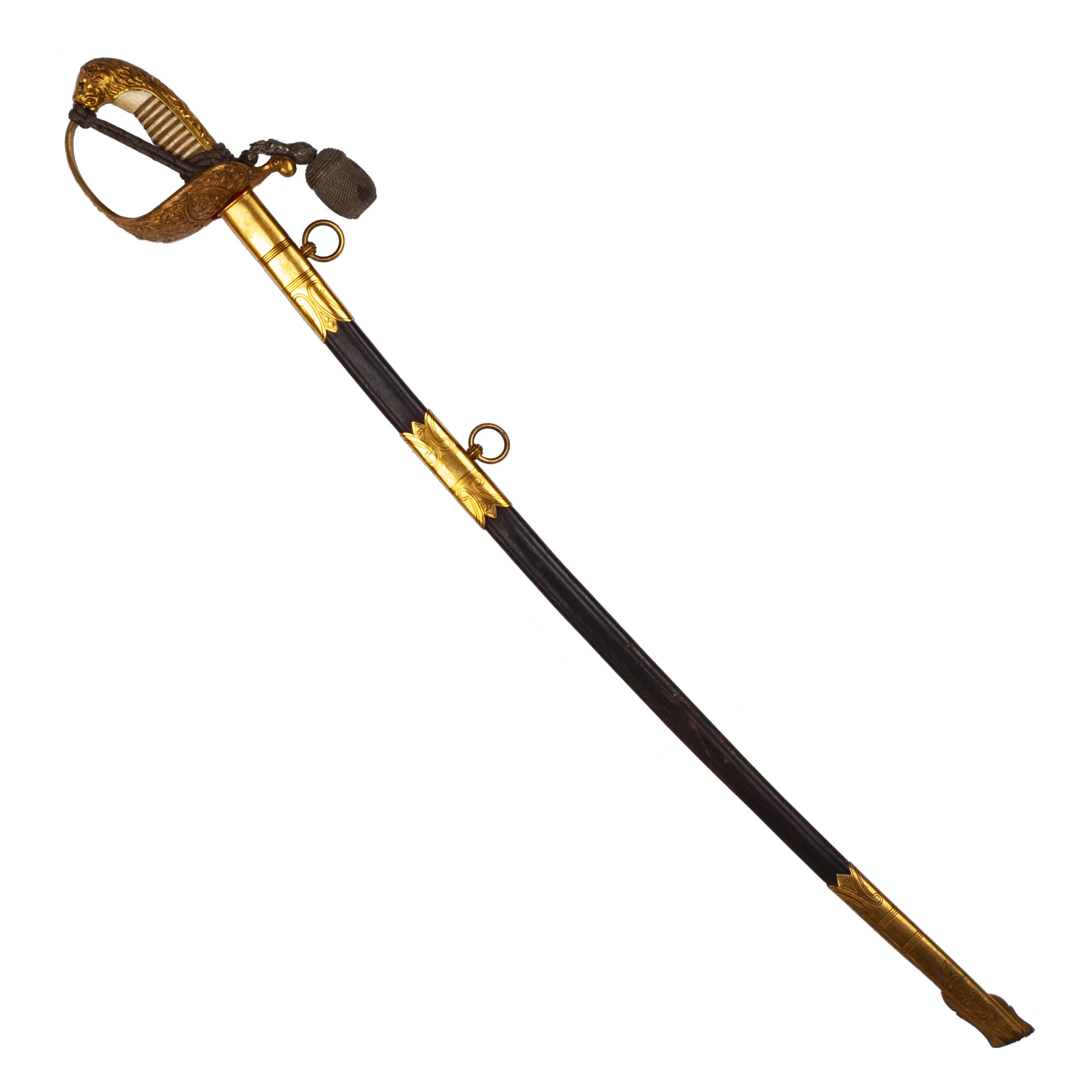 Presented with its black-lacquered metal scabbard with gilded brass fittings and two suspension rings, all in excellent preservation.