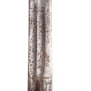 An “old-style” Solingen blade made for the Eastern market. The handle’s pommel shape is common for Syrian saifs.