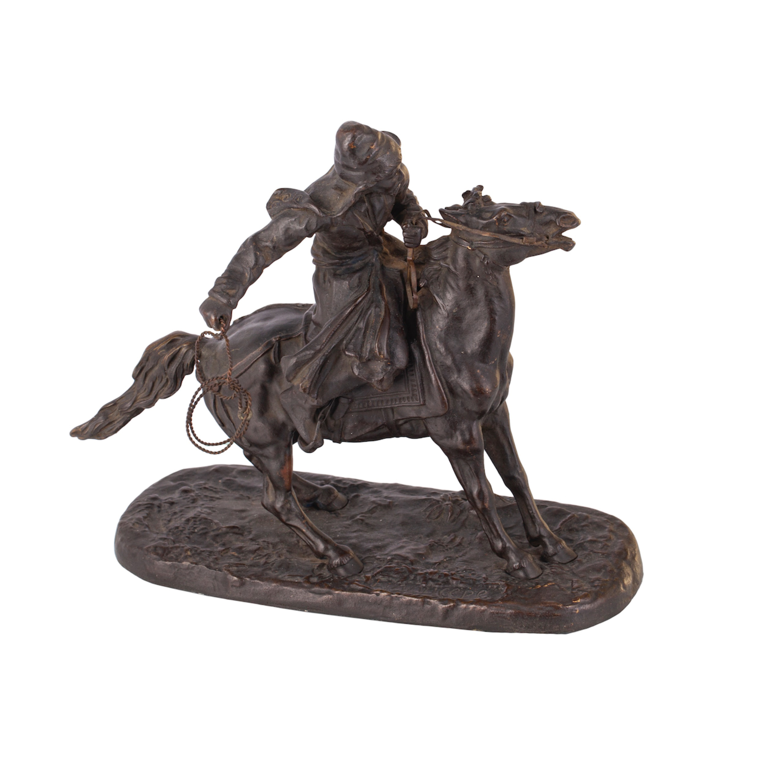 Estimate: 2000-3000€A Russian bronze composition “Little Kyrgyz or Bashkir the herdsman”. Author E. A. Lanceray. Petersburg, the end of the 19th century. Dimensions: 19 x 23 x 10 cm.