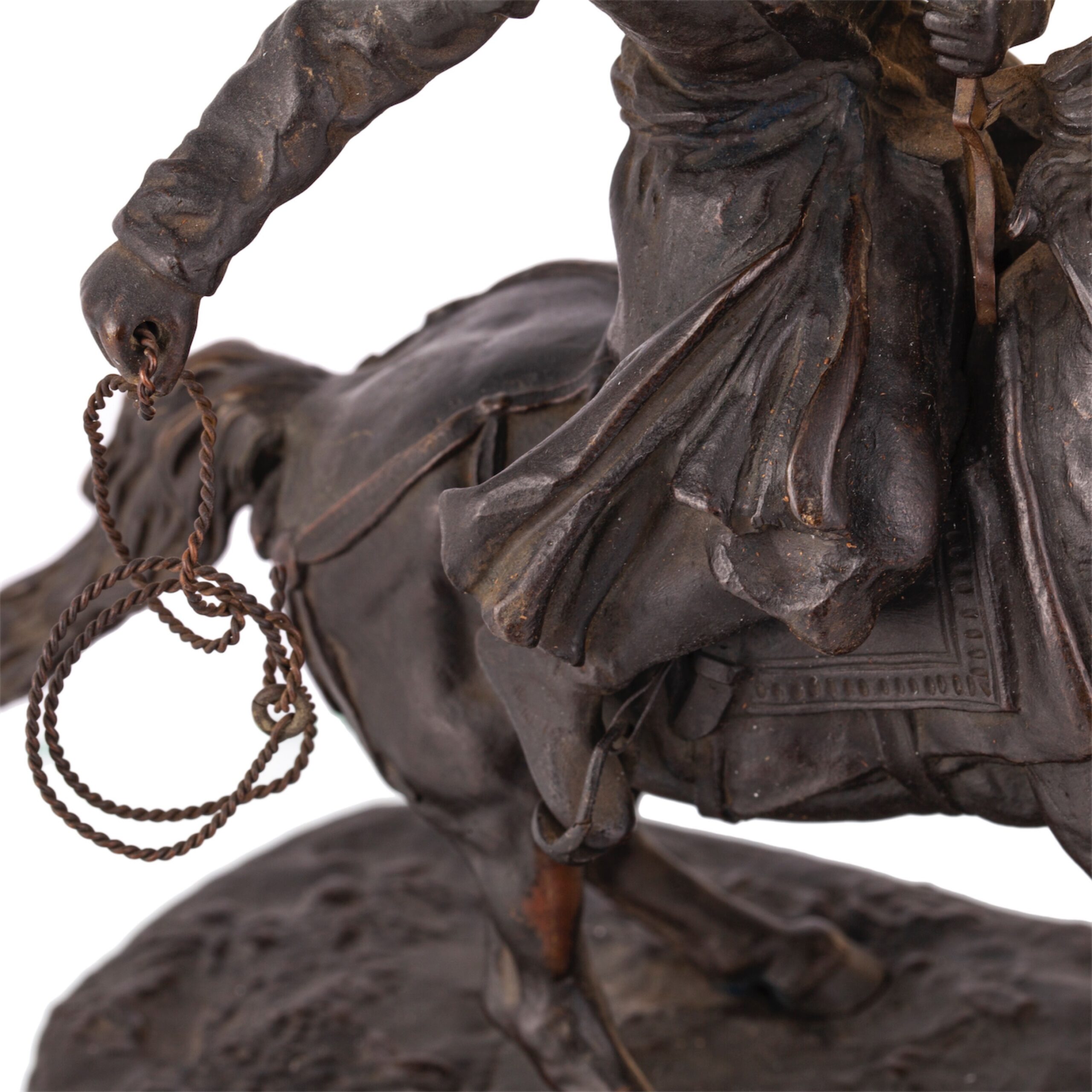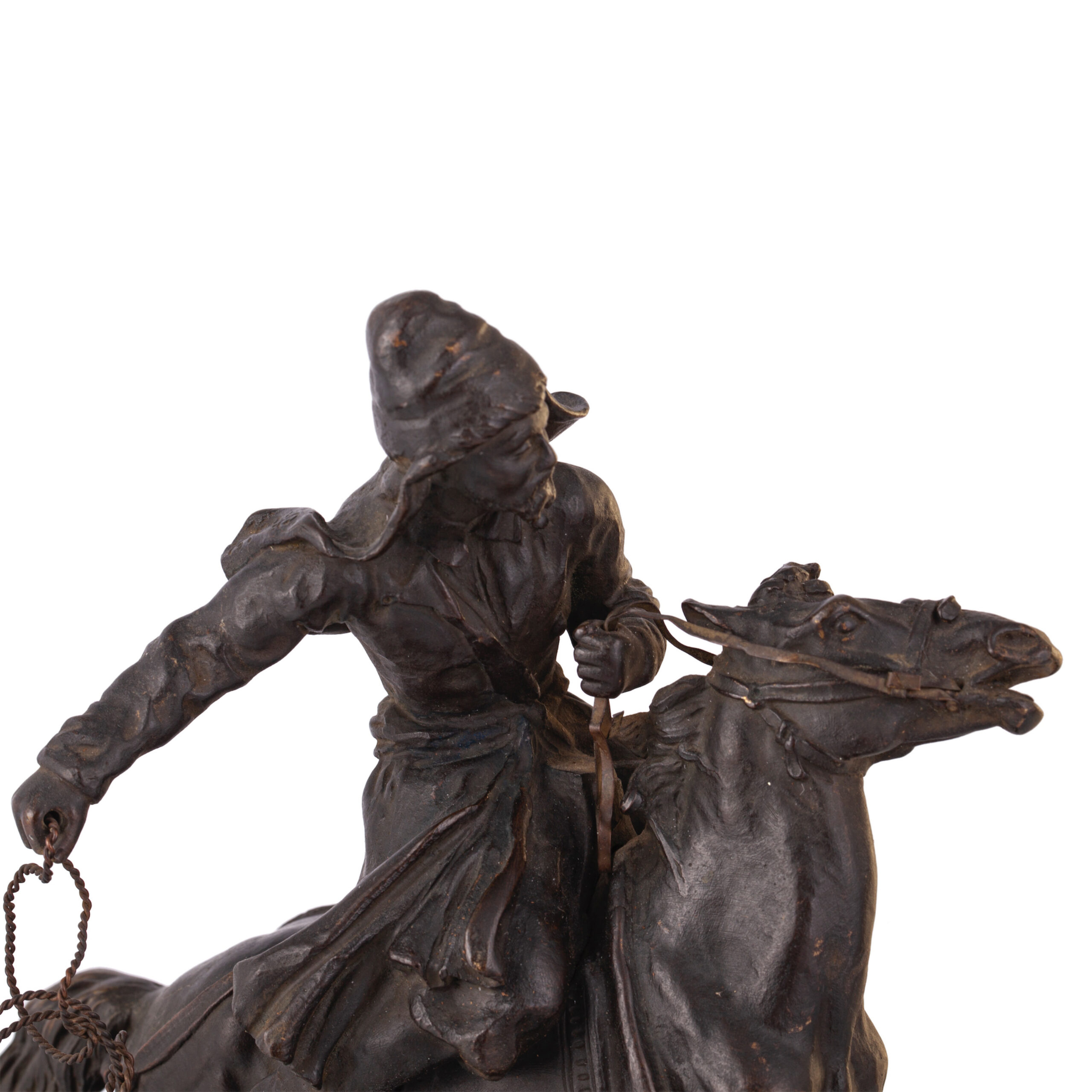 St. Petersburg, late 19th centuryThis bronze composition by Evgeny Lanceray represents a mounted Bashkir herdsman, shown in dynamic motion, holding a lasso in his hand. The work belongs to Lanceray’s celebrated ethnographic series, inspired by his extensive travels across Russia and its borderlands.