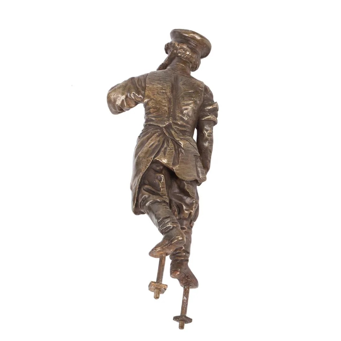 Height: 13 cmThis small bronze figure depicts a peasant caught mid-step in a lively dance, his posture animated and expressive. Works of this type reflected the 19th-century fascination with scenes from folk life, capturing the vitality and humor of rural traditions in miniature sculptural form.