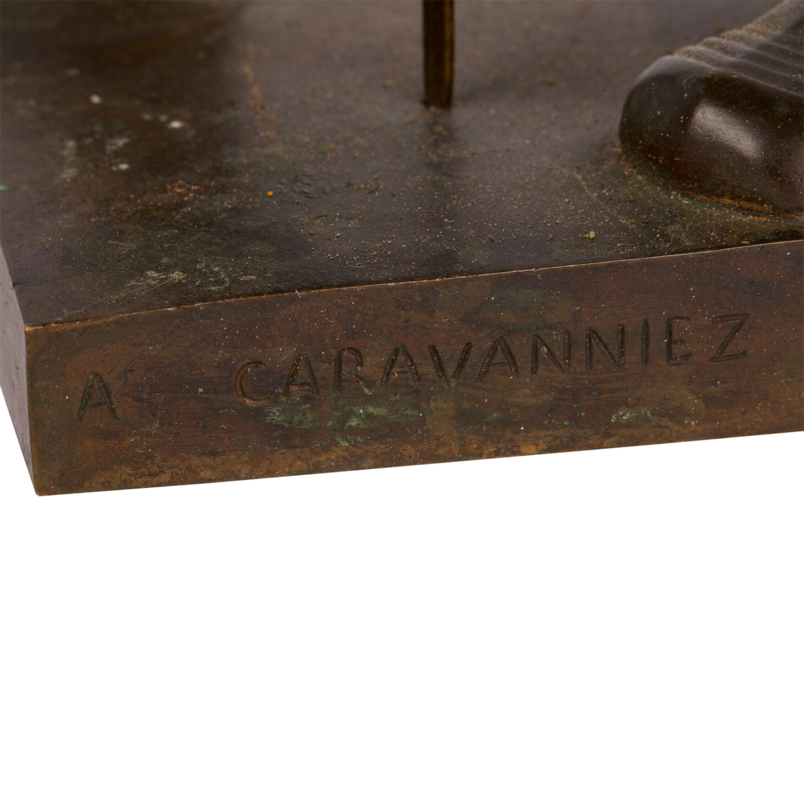 Caravanniez’s public works include monuments and statues in Saint-Malo, Nantes, Cholet, and Sainte-Anne-d’Auray, most notably the monumental statue of corsair Robert Surcouf (1903) in Saint-Malo, also executed in bronze by Barbedienne.